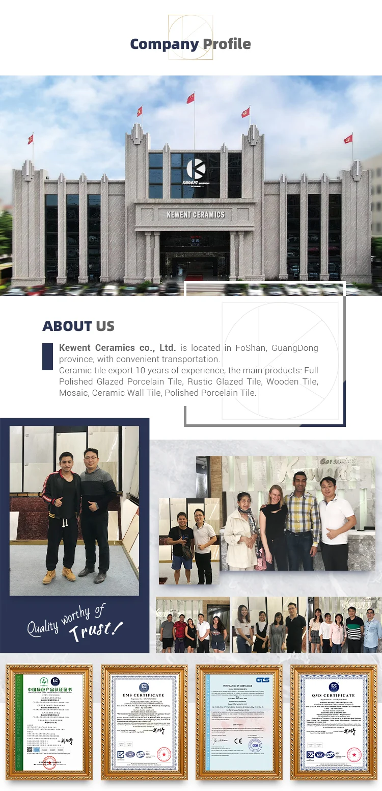 Packing Detail | 4pcs/ctn, 1.44sqm/ctn, 30kgs/ctn, standard cartons and wooden pallet. |