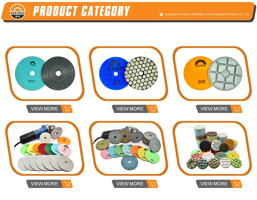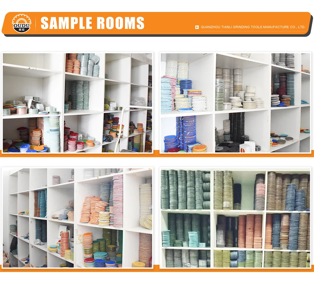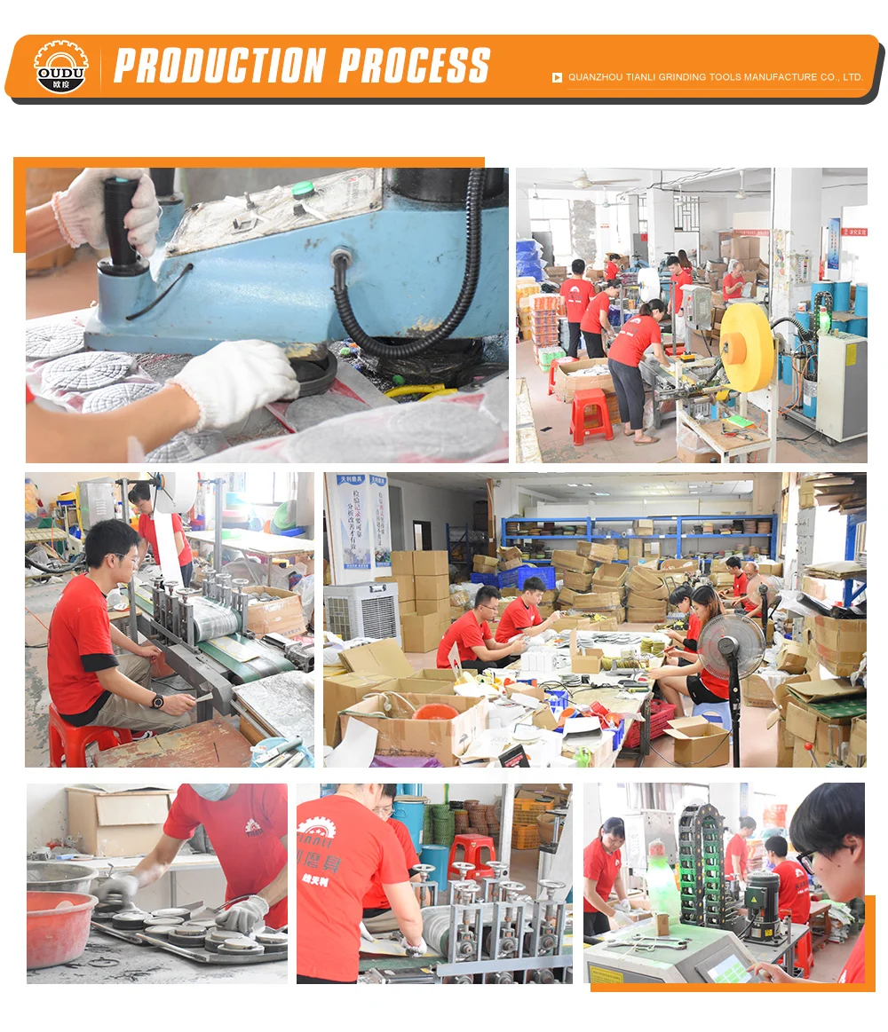 Quanzhou Tianli Grinding Tools Manufacturer Company is currently a professional manufacturer of abrasive tools. We are 2 3 years old factory with diamond tools, grinding tools, diamond polishing pad, floor polishing pad. One month can make diamond polishing pad 3 50 000 pcs per month, our factory have 6 000 square meters, have 4 floors, we have stock 1 000000 pcs diamond polishing pad, if you want min order we can send for you within 1 day. when you have new order, our Q C will check each pad for you, keep each pad with good quality. Every year we have 10 type new product for the market. We can send all products with good price and good quality with fast shipment for you all way. we also accept O E M all way. Just tell me what you want, we will supply for you at the first time. we have a professional team sever for you, if your order have any problem or have some questions with product, please let me know, we will give you answers as soon as possible. "People oriented, integrity career" is the corporate culture, core values, "the prestige first, customer first" is our principle of service, your satisfaction is our eternal pursuit. We are ready to your sincere cooperation, mutual benefit and create cause. Use our products for the building blocks of your success!