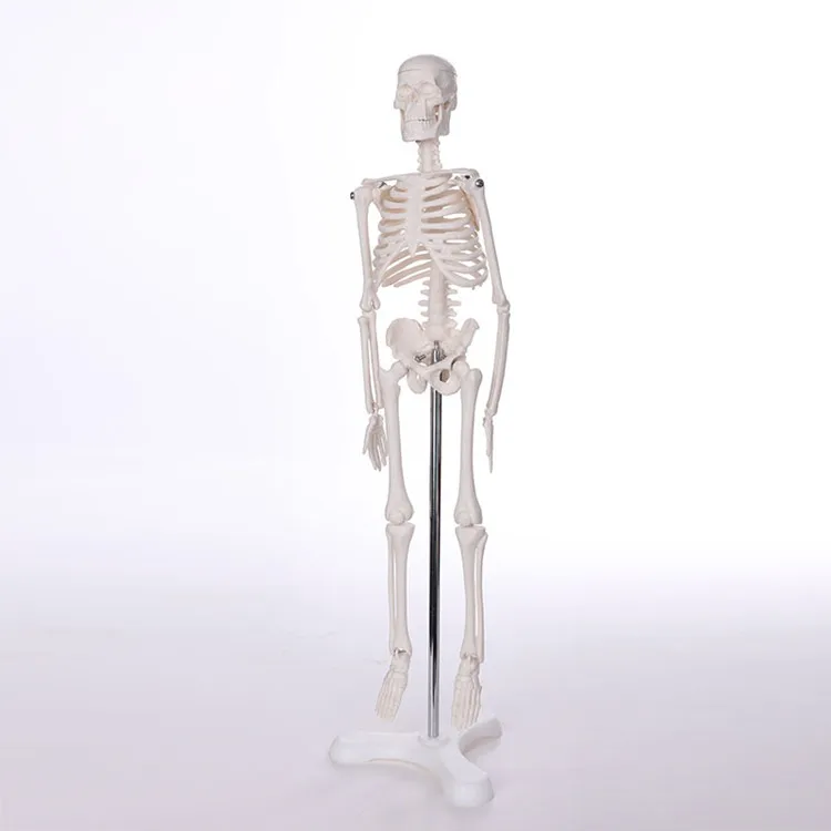 1. Arms and legs are removable 2. Display nerve branches, vertebral artery, and lumbar intervertebral disc. 3. Skull includes amovable jaw, a removable cranium, epiphyseal line and three detachable lower teeth. 4. Fixed on a 16-inch metal bracket. 5. Made of PVC, washable, unbreakable, with a dust cover.