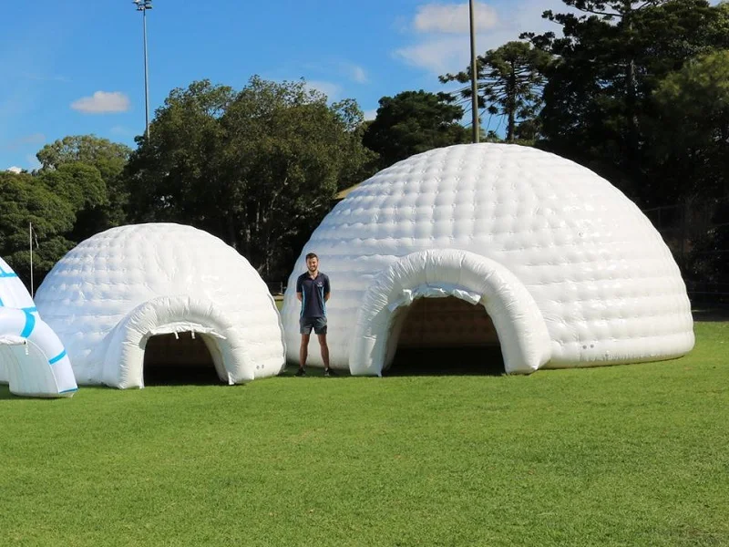 Inflatable tent varies in form, color and usage. There are star tent, marquee, dome tent, promotional tent, etc.