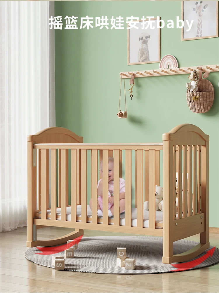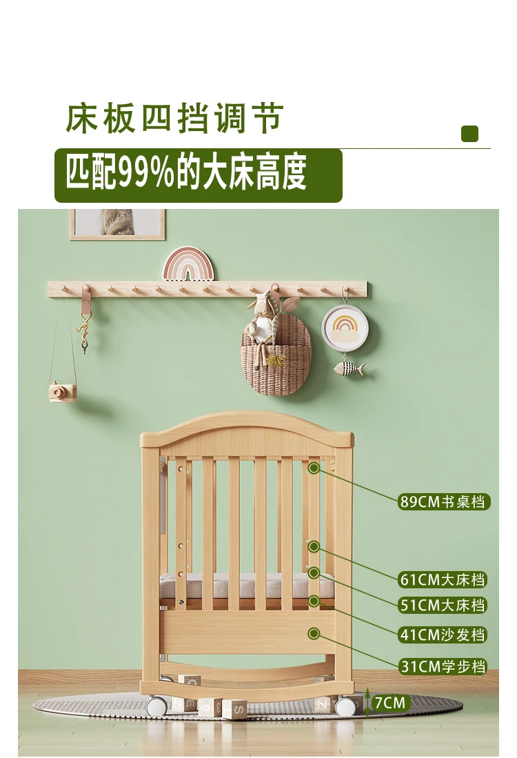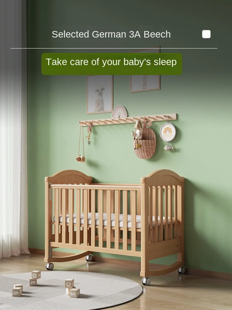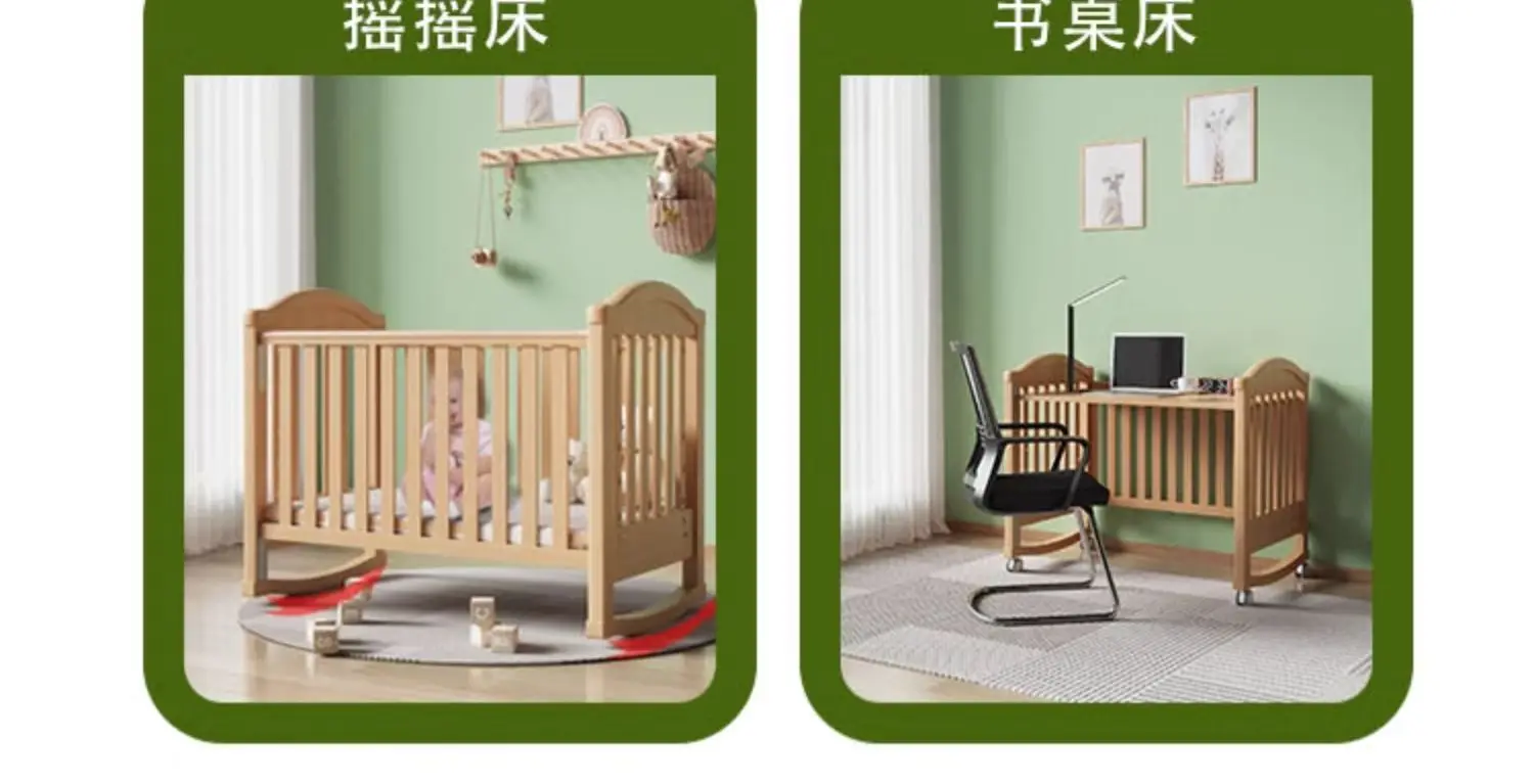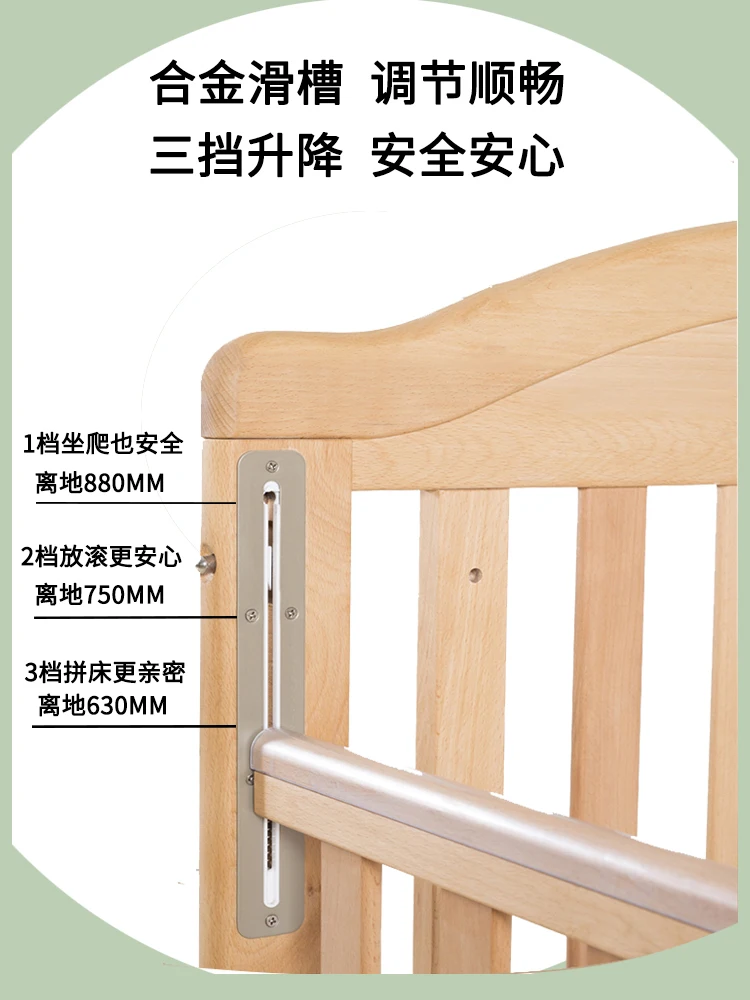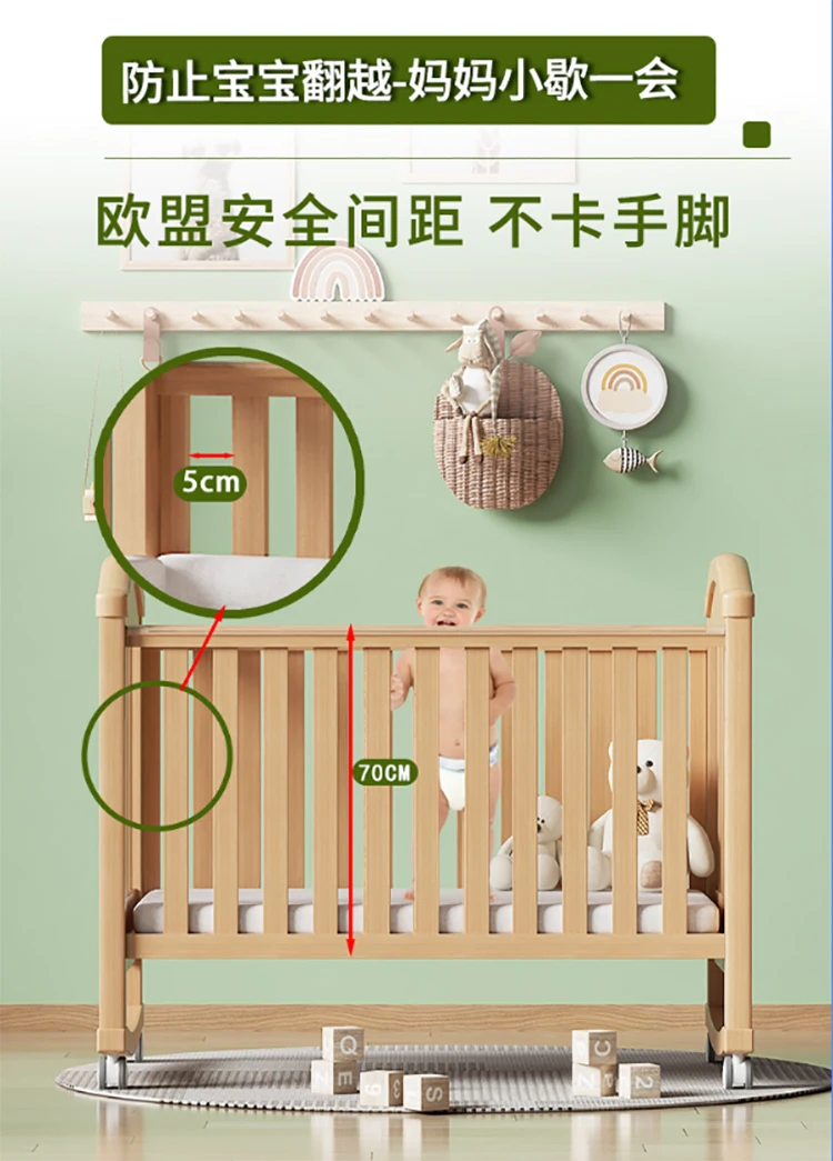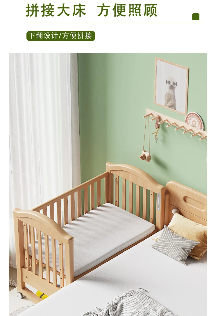 Modern Design Multifunctional Movable Side Bed for Children Babies Solid Beech Wood Crib Splicing Feature Hospital Bedroom Park