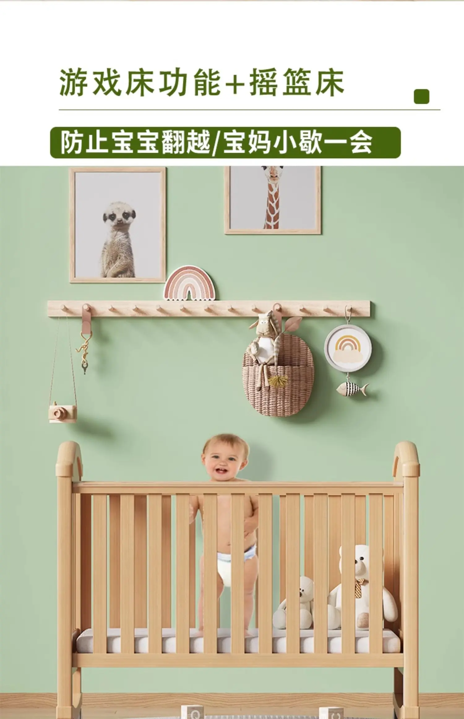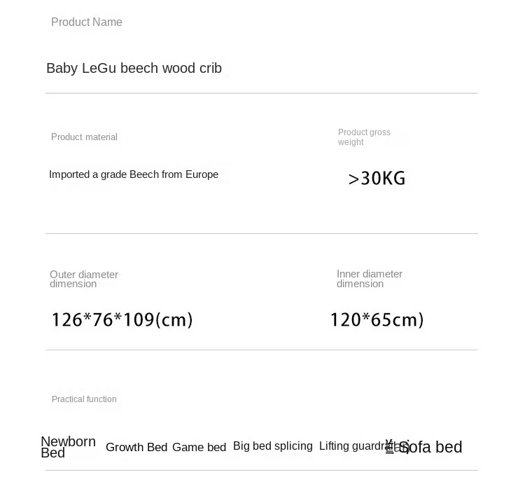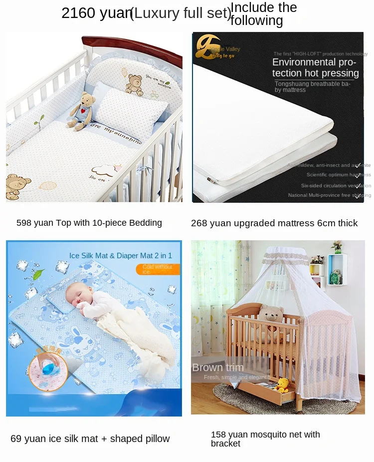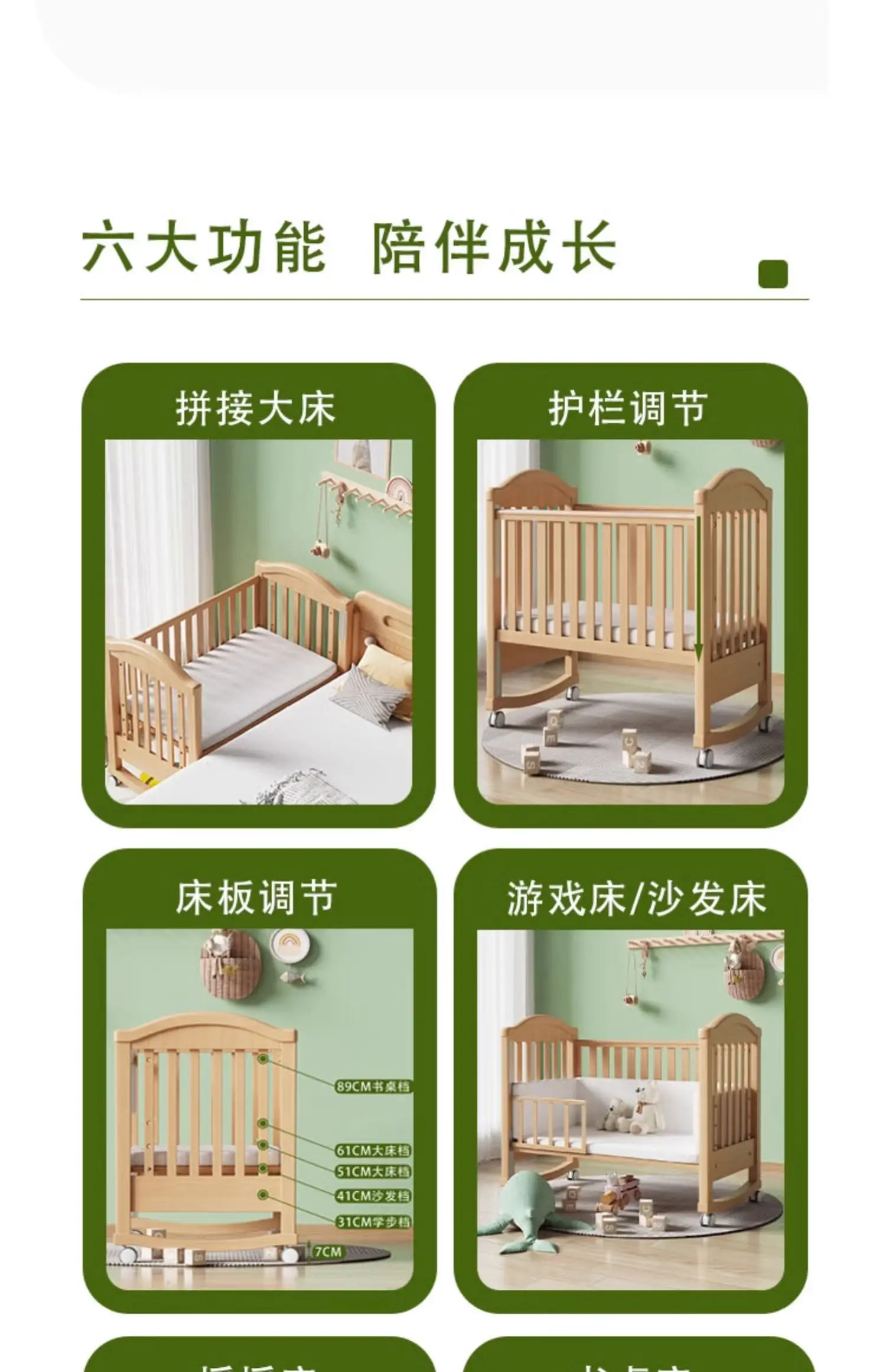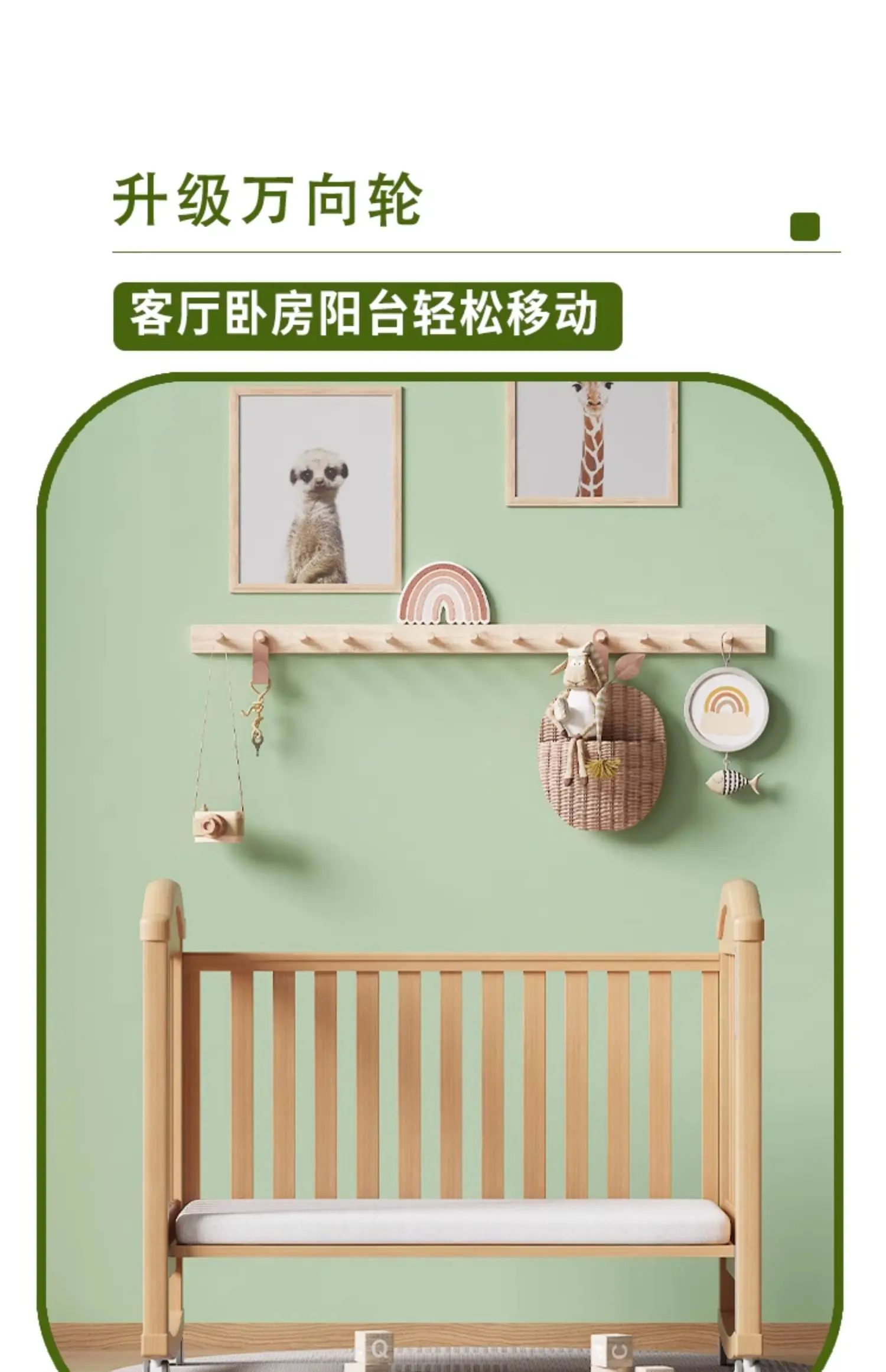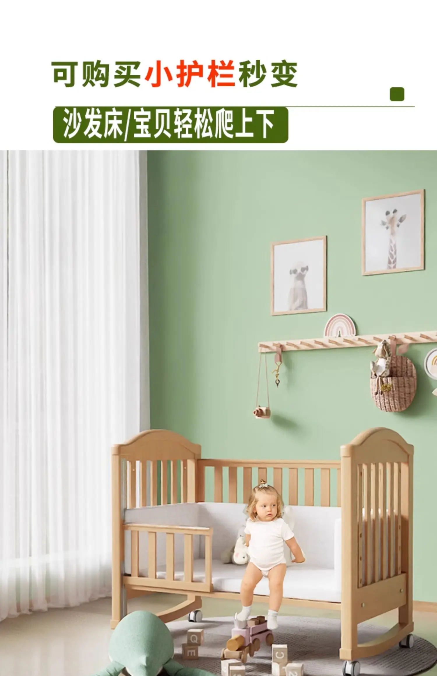 Modern Design Multifunctional Movable Side Bed for Children Babies Solid Beech Wood Crib Splicing Feature Hospital Bedroom Park