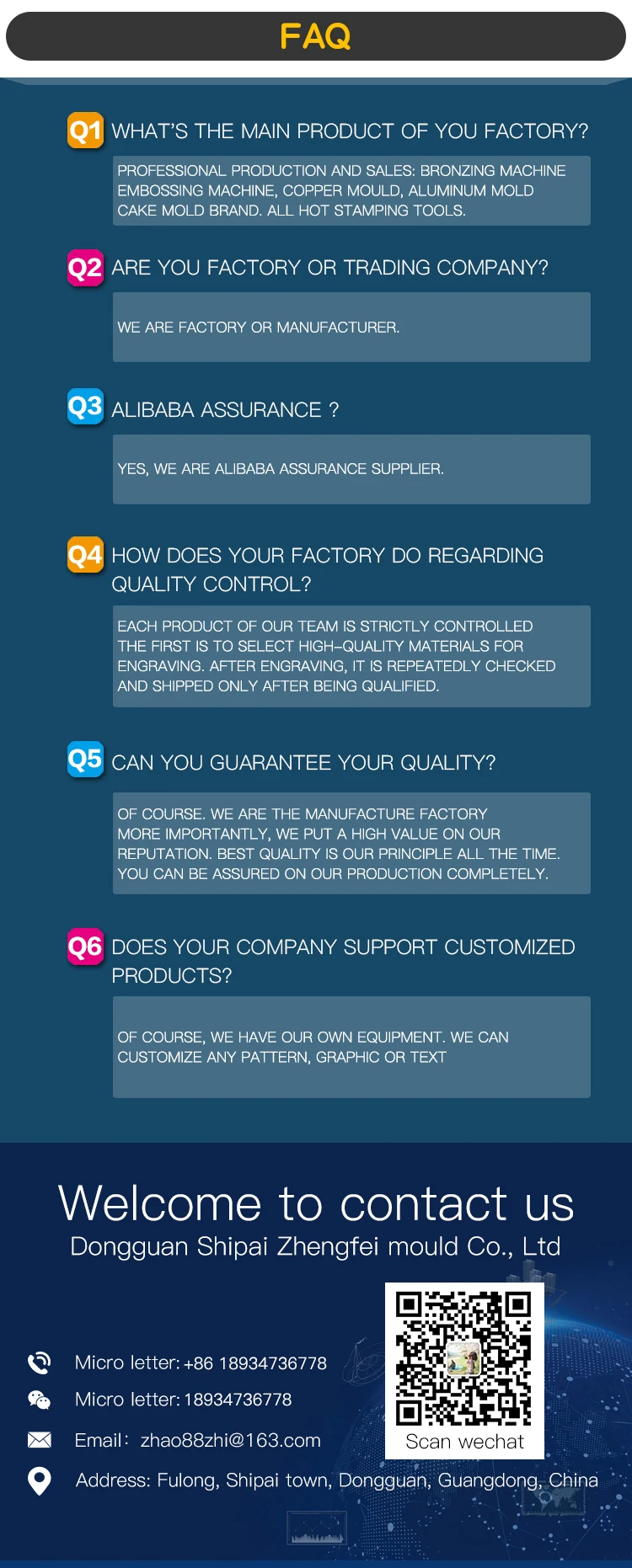 Q1: Are you factory or trading company? A: We are factory or manufacturer. Q2: Can you guarantee your quality? A: Of course. We are the manufacture factory. More importantly, we put a high value on our reputation. Best quality is our principle all the time. You can be assured on our production completely. Q3: What should I do if we are not able to operate the machine when we receive it? A: Operation manual and video demonstration sent along with the machine to give instructions. Besides, we have professional after-sale group to customer 's site to solve any problems. Q4: How could I get the spares on machines? A:We will send extra sets of easy broken spares and accessories like O ring etc. Non-artificial damaged spares will be sent freely and shipping free during 1 year's warranty. Q5: Is there any insurance which I pay for to guarantee I will get the right machine? A: We are an onsite check supplier from Alibaba. Trade Assurance provides quality protection, ontime shipment protection and 100% safe payment protection. Our factory already highest stars of the grade. Q6:What's the payment terms and trade terms for new customers? A: Payment terms:T/T,L/C,D/P,O/A, Western Union etc. Q7:What's the Minimum Order Quantity and warranty? A:MOQ:1 set Warranty:12 months,some customized products will be 24 months. Q8:Do I need to pay for the extra cost like tax or duty ? A:Yes, custom duty / tax it's the buyer responsibility need to pay it, the shipping cost it's not included the tax.