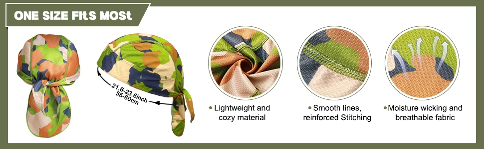 Sweat wicking do rags skull caps for men women can easily absorb moisture from your head & prevents it from getting into the eyes, helps you to dissipate sweat in time; Perfect fits under helmet,baseball cap,hard hat,provide cooling & sunshade for your head hair from sun, Ensures the warmth in the spring fall winter. Perfect for Boating,Cycling,Fishing,Riding,Rowing,Motorcycles,Walking the dog,Jogging, Traveling,Football,Climbing,Hiking,Biking,Water Sports.