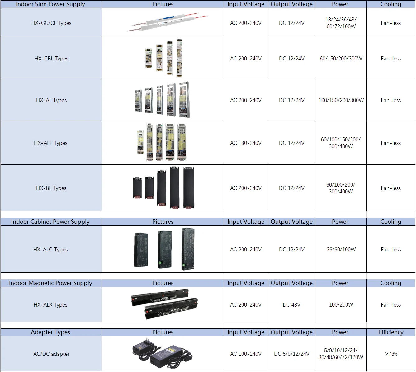 HX-400BL-12/24V | DC 12V/24V | 33.3A/16.7A | >90% | AC 200-240V | 400W | 243×59.9×28.5 |