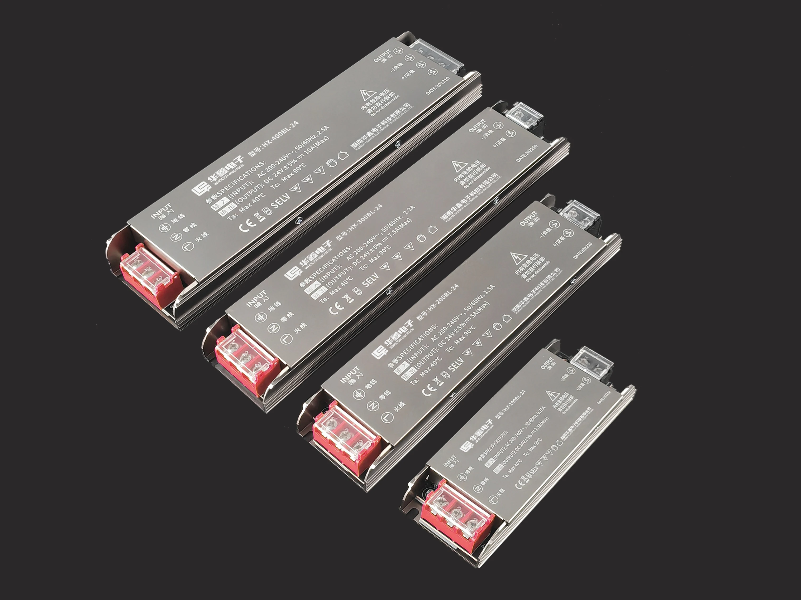 HX-200BL-12/24V | DC 12V/24V | 16.7A/8.3A | >88% | AC 200-240V | 200W | 210×49.8×22.7 |