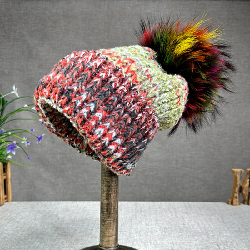 1.Product Name | 2024 New Hat Women Cashmere Knitted Hat Autumn/Winter Fox Fur Pompom Hat Curled Edge Colored Protection Ear Cap | ||