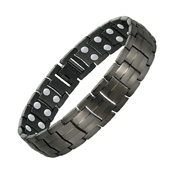 Factory Direct Sale Fashion Magnetic Bracelets Black Plated Double Row Magnetic Therapy Stainless Steel Bracelets For Men