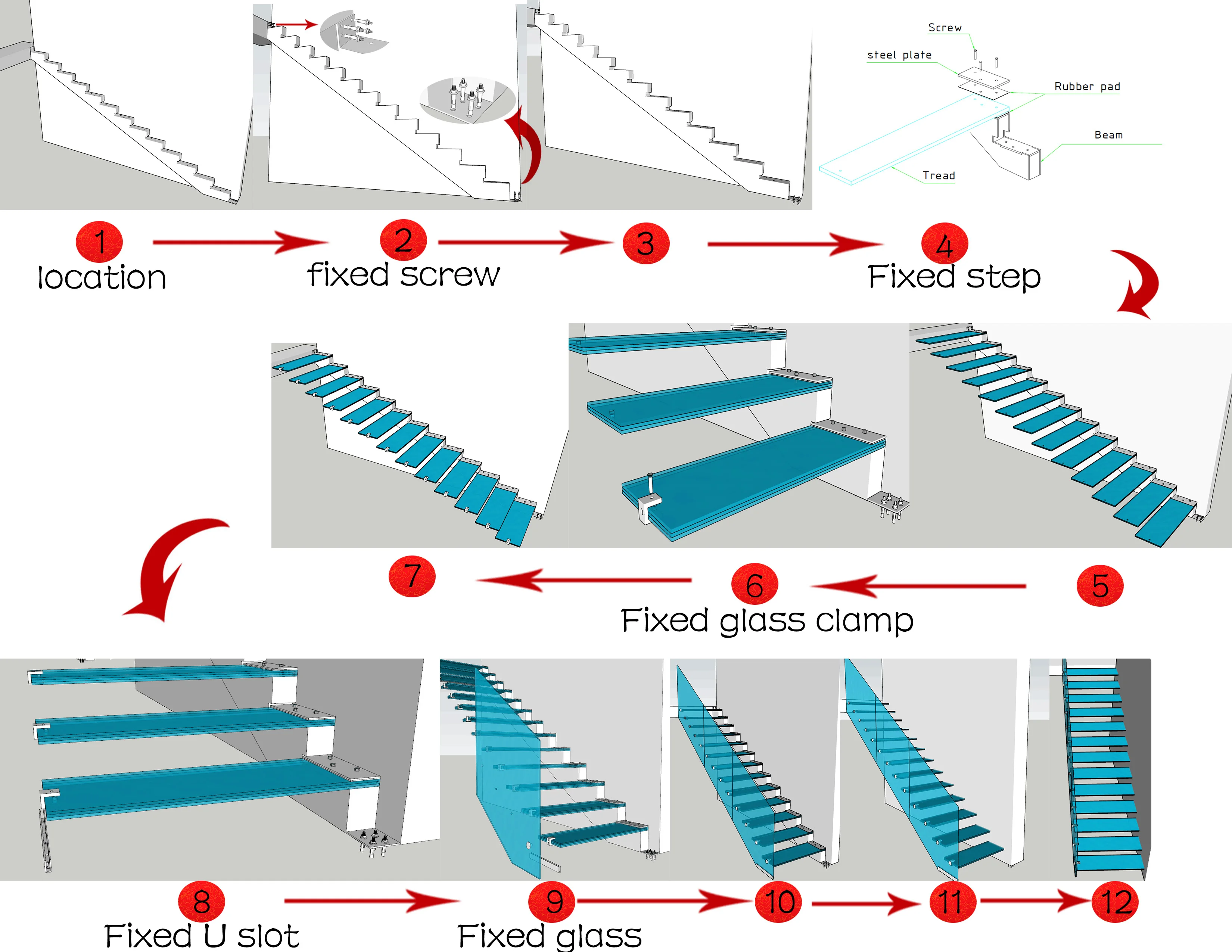 Product Name | Modern Indoor Wood Stair Treads Glass Standoff Baluster Designs Straight Staircase Stairs |