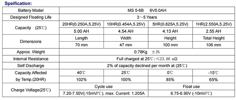 Mhb MS5 6B AGM VRLA Lead Acid 6V 5ah 20hr Rechargeable Battery Price for UPS Power Tools