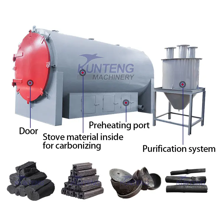 Smokeless Biomass Rice Husk Charcoal Making Machine From Rice Hull Straw Palm Waste
