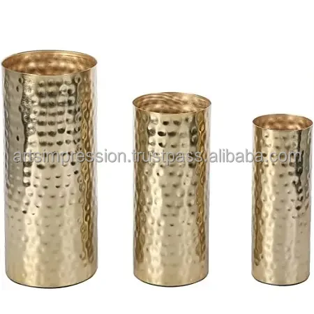 Metal Hammer Glass Set off Three Flower Vase Beautiful Table Decoration Crystal Material Vase Custom Indian Flower Vase & Pots $6.50-9.00
