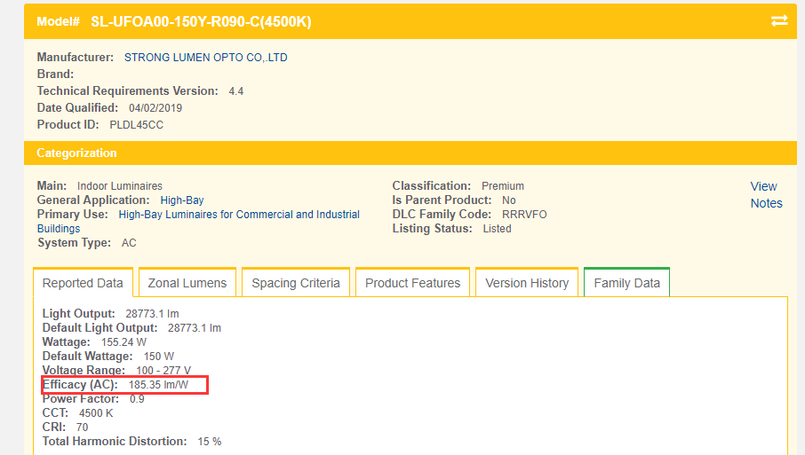 High Efficacy LED 190LM/W