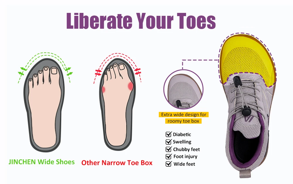 Wide toe box:Grant your toes some much-needed freedom by allowing your toes to splay into their natural posture.