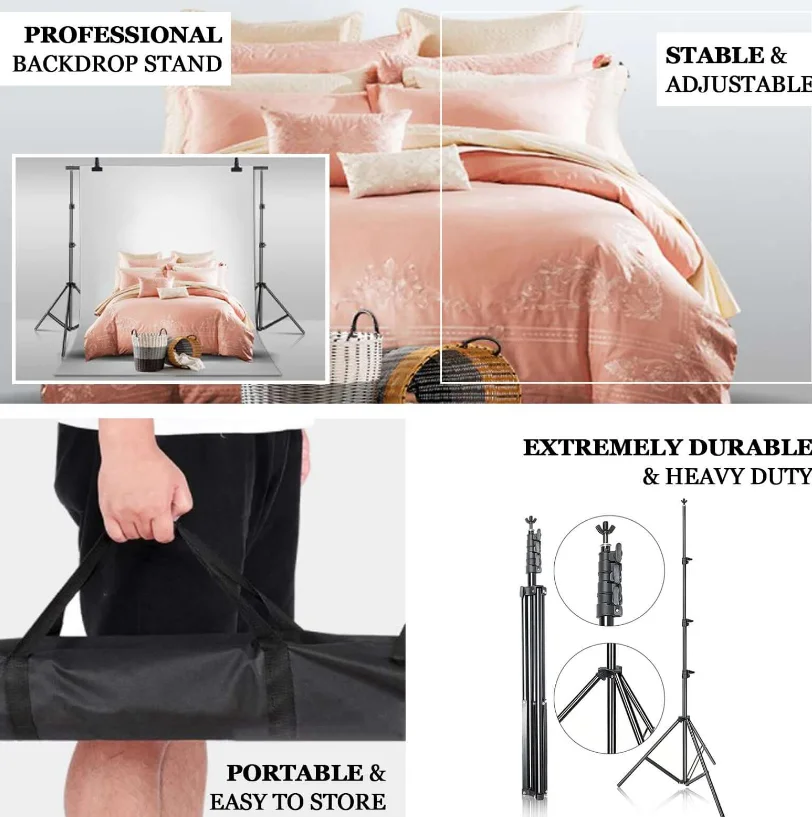 Metal DIY Adjustable Heavy Duty Pipe and Drape Stand Set, Portable Photo Backdrop Kit 10ft