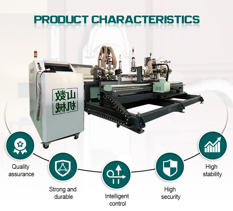 Functions | Door keyholes, hinge holes, and bolt holes can all be machined on this equipment |