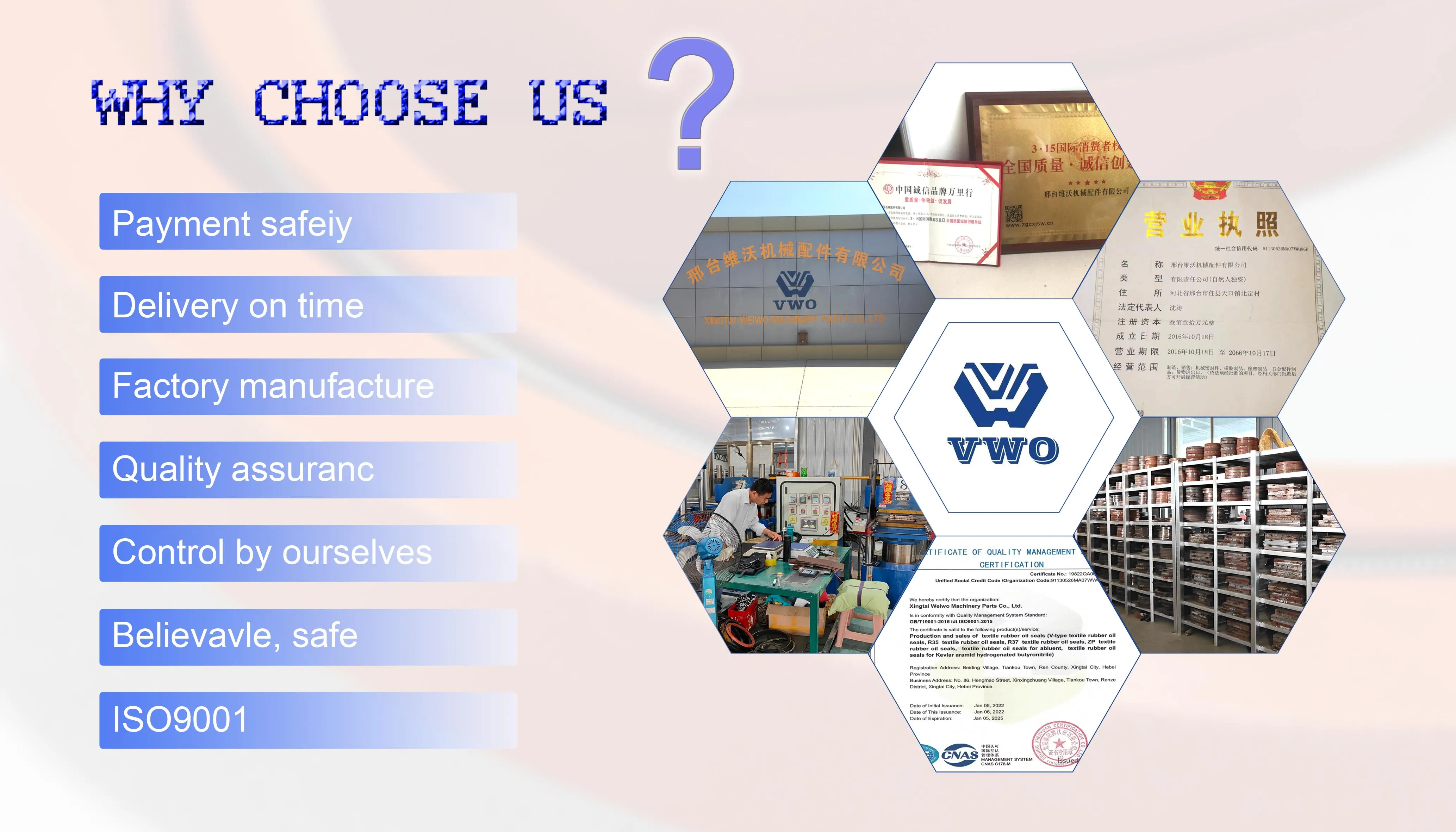 Our factory is a professional oil seal manufacturer. We aim to produce the highest quality of oil seals and export around the world. After years of efforts, we have accumulated more experience and knowledge. Our main product , oil seals with fabric,ect