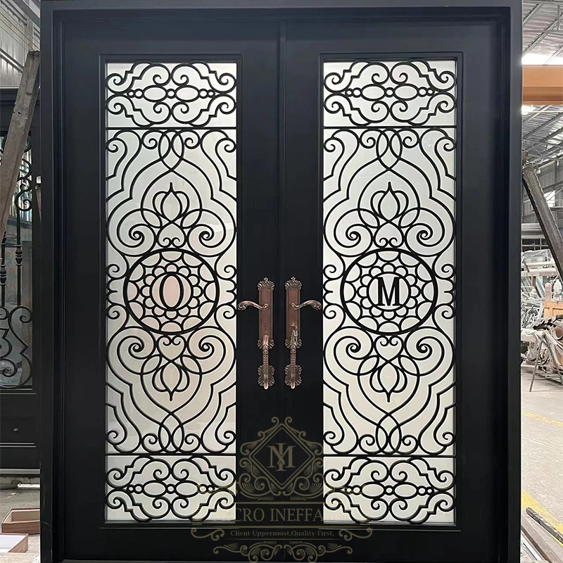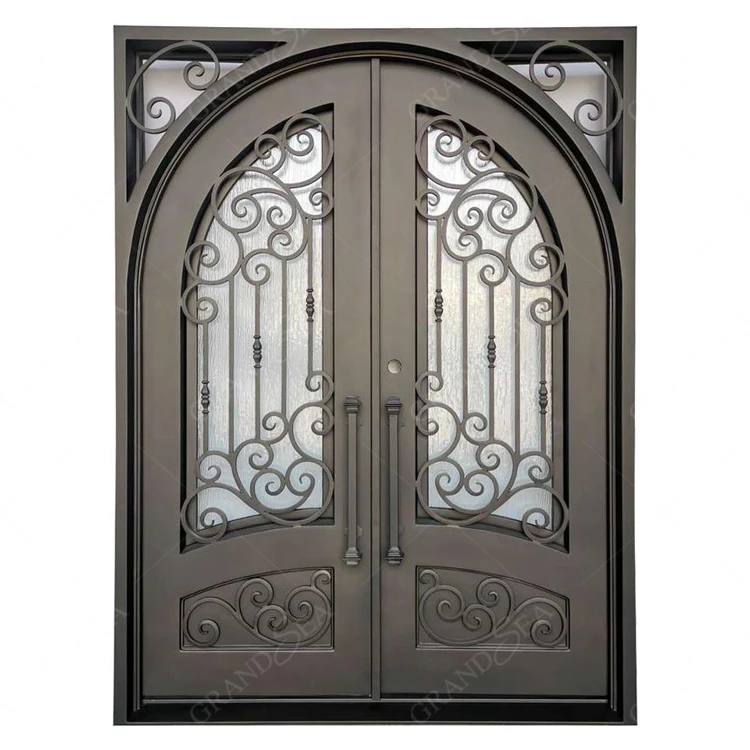 Hot Selling Wholesale Price Large Cast Iron Garden Door Design Safe Double Opening Glass Big Wrought Iron Villa Door