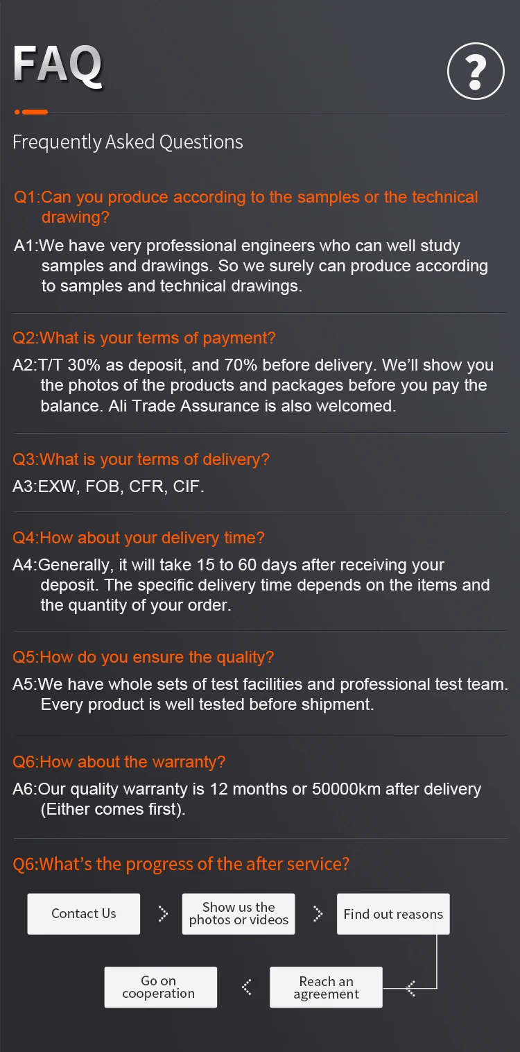 Our Advantage | 1. The same length as original one. 2. Lower MOQ is acceptable with more models. 3. Fast delivery. 4. Laser Mark for free. 5.Pallet with Film for free. | ||||||