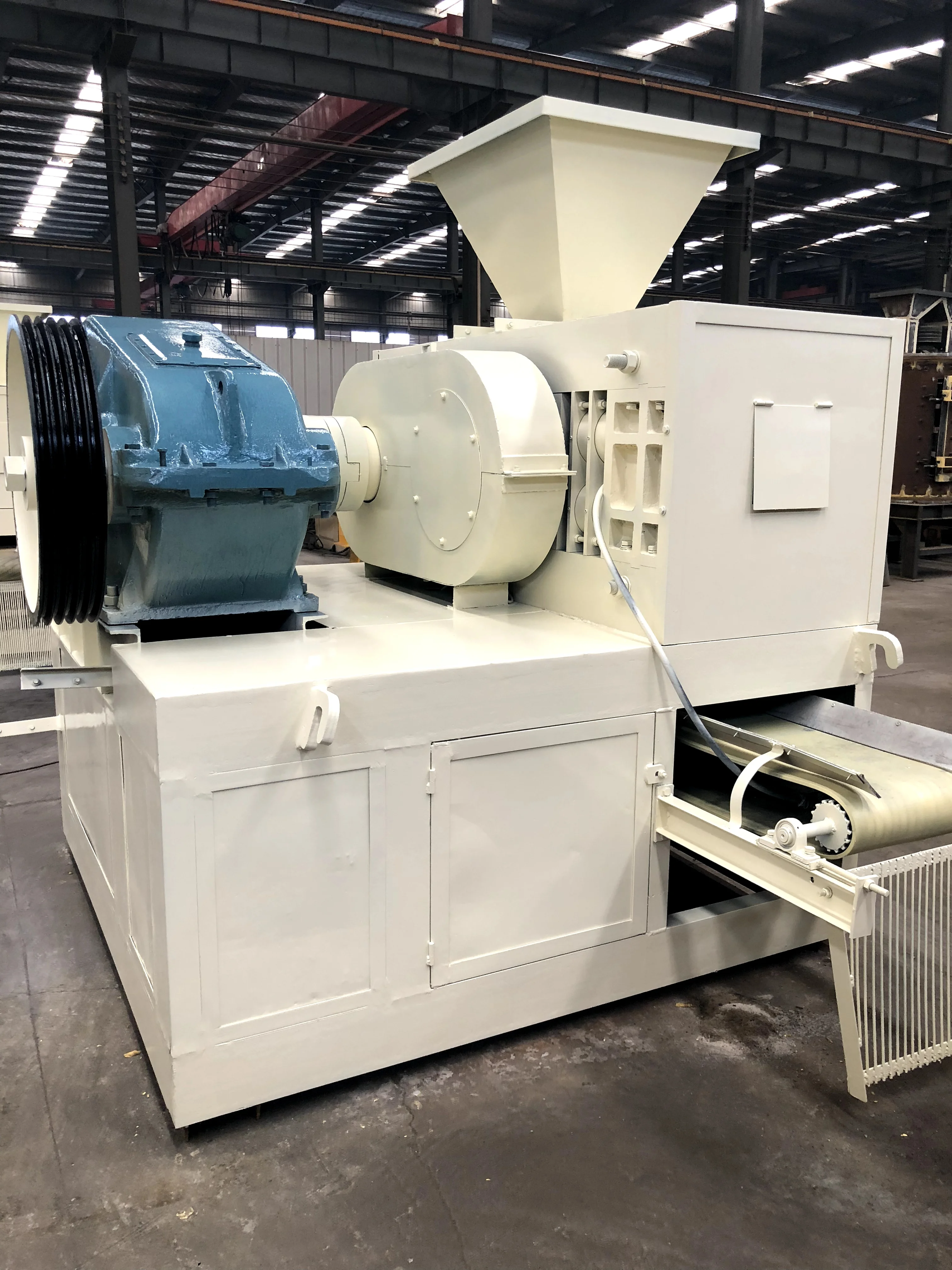 Our briquette machine are rollers pressing type. This type of briquette press can apply higher pressures and thus produce higher-density briquettes. These briquettes can be designed in oval shape, egg shape, pillow shape, square shape, etc. This machine is widely used in the coal industry and metallurgy industry.