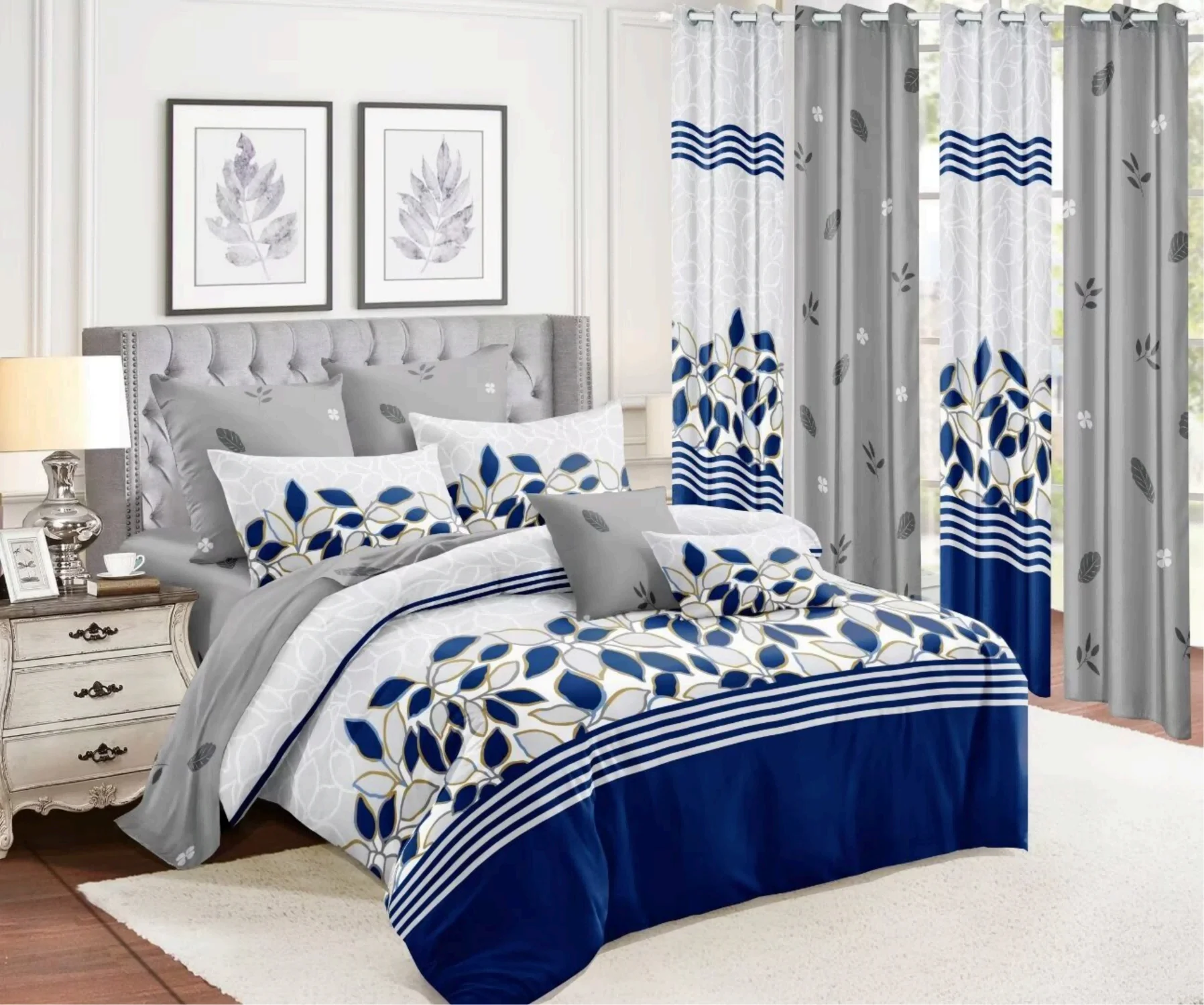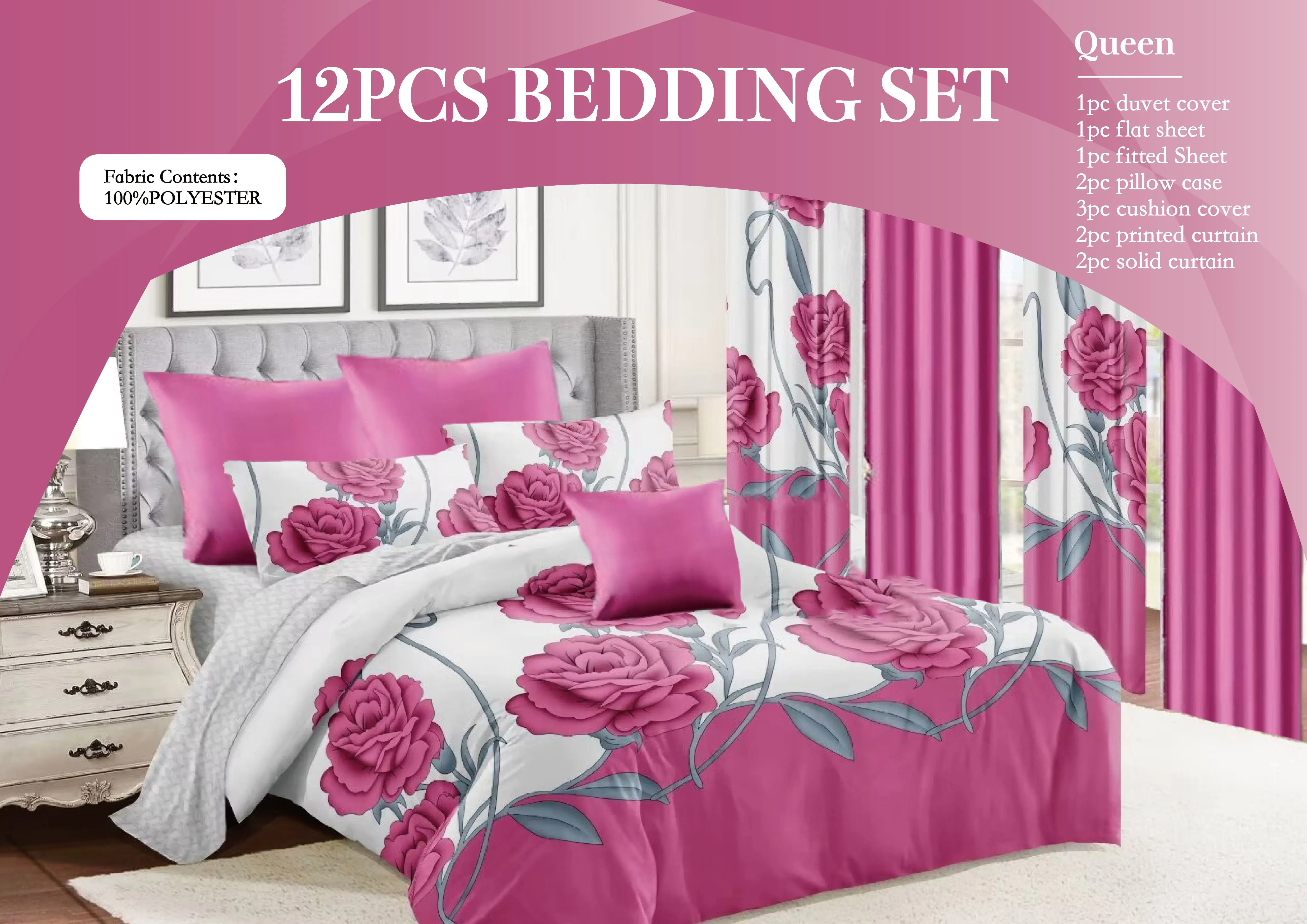 12 Piece Bedding Sets with Matching Curtains Cotton Bedding Set with Match Curtains Queen Size In Stock | ||