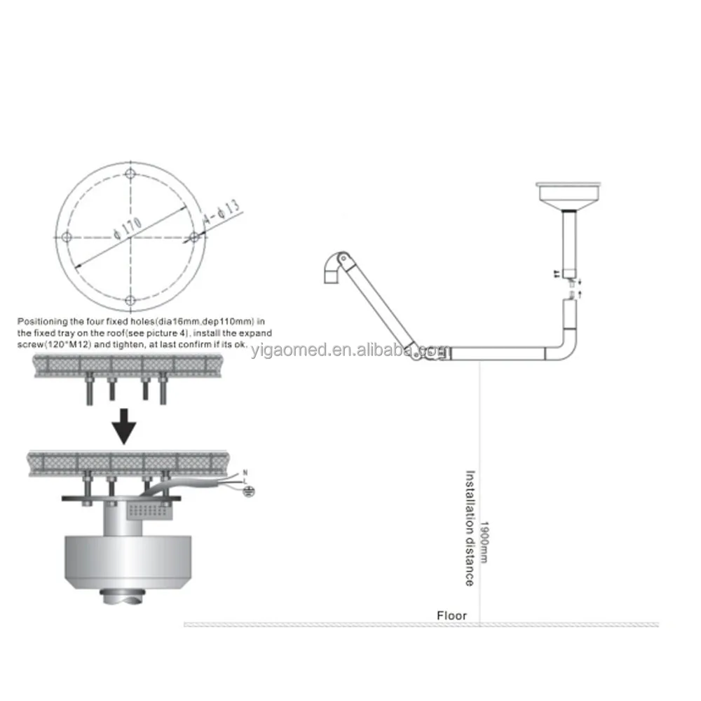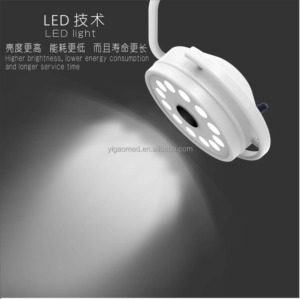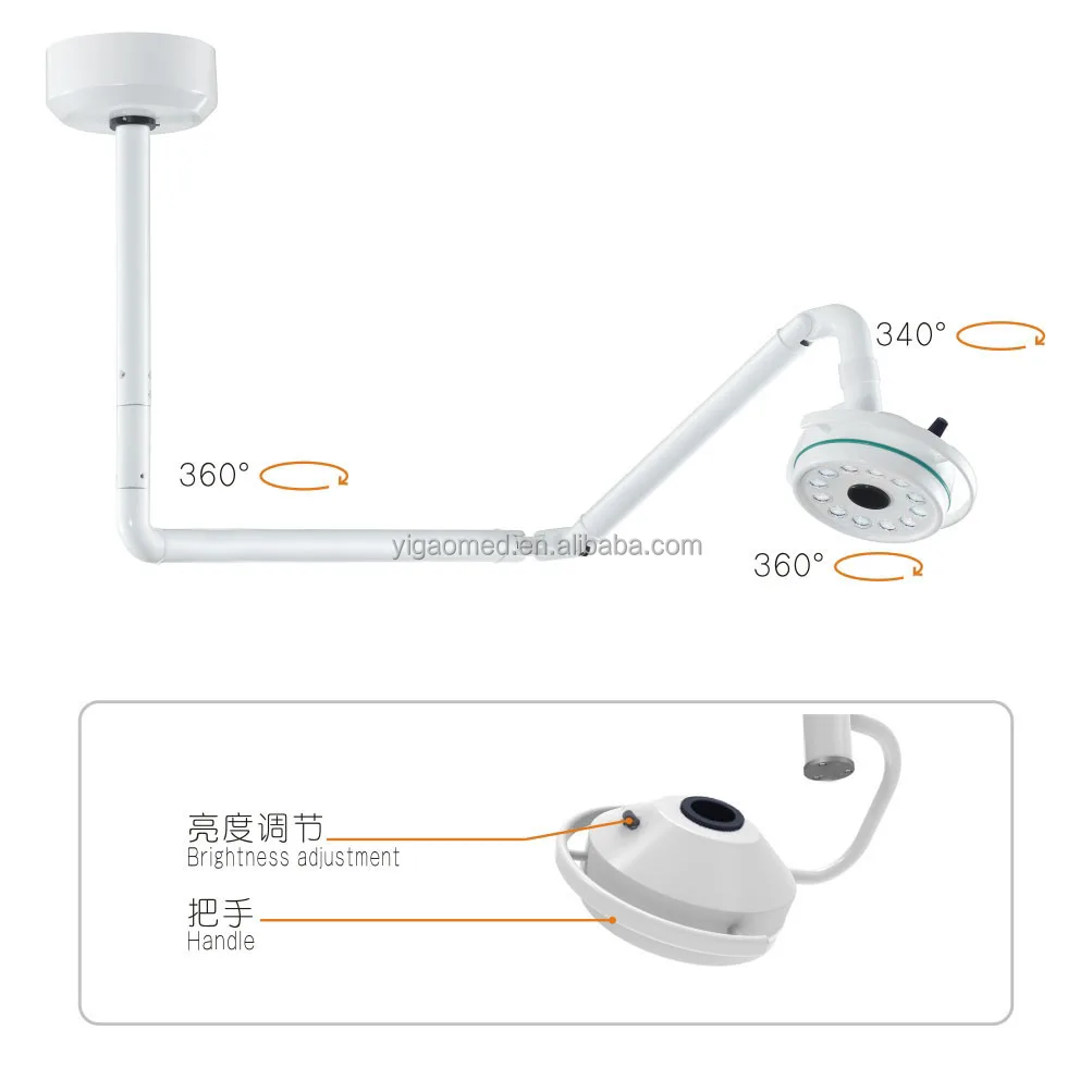 This product adopts 12 pieces 3 W LED bulbs as light source. High brightness, linear adjustable, daylight color, long lifetime. Lamp holder and arm can rotate freely,multi-angle lighting. The center column has different lengths such as 800 mm, 1000 mm and 1200 mm, which can be used for different heights of clinics. Its simple to install and easy to operate,no direction requirements.