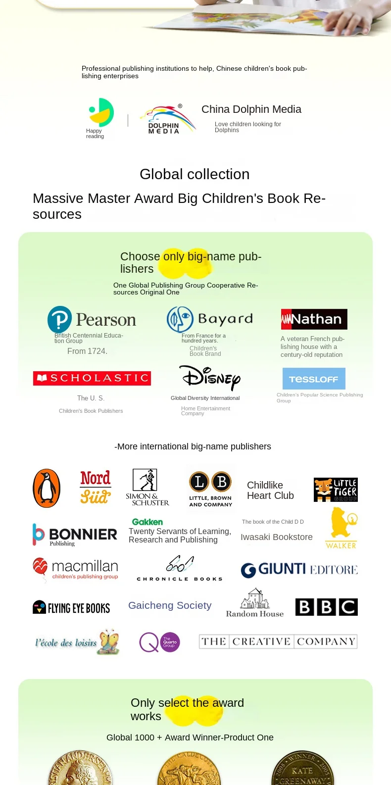Dolphin Media, founded in 1999, formerly known as Dolphin Cartoon Co., Ltd., is one of the domestic children's book planning, production, and distribution enterprises. Its headquarters is located in Wuhan, with subsidiary companies established in 8 cities including Beijing, Shanghai, Shenzhen, Wuhan, and Jinan. Its business covers the whole country and is committed to providing educational products and services for children, families, and educational institutions aged 0-12 in China.