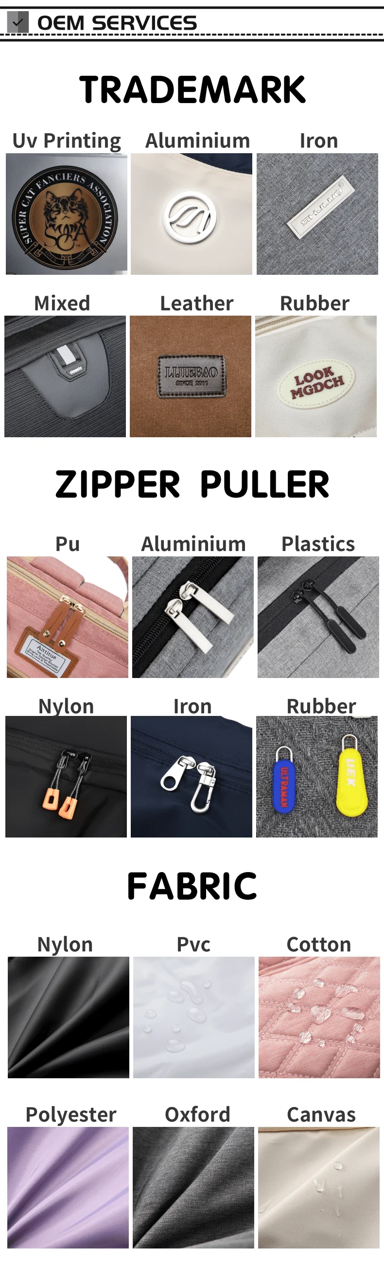 *Main Material | Oxford | ||||||