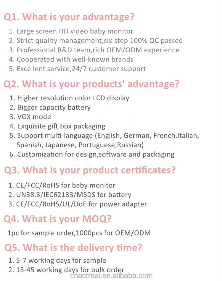 Alarm mode | sound detection/temperature/video loss/feeding wake-up/low battery |