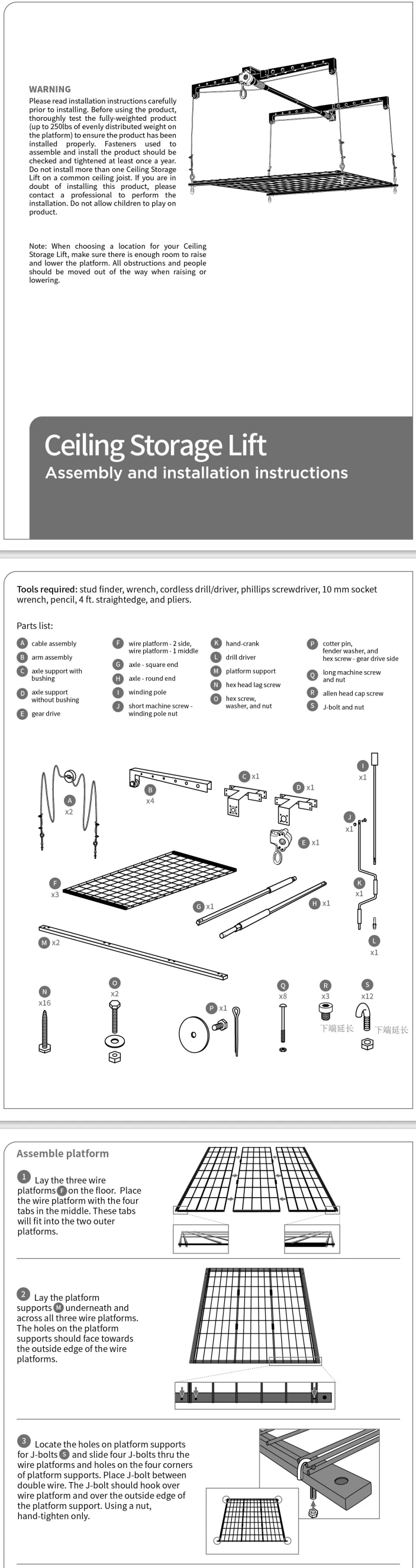 Type | Ceiling Storage lift |