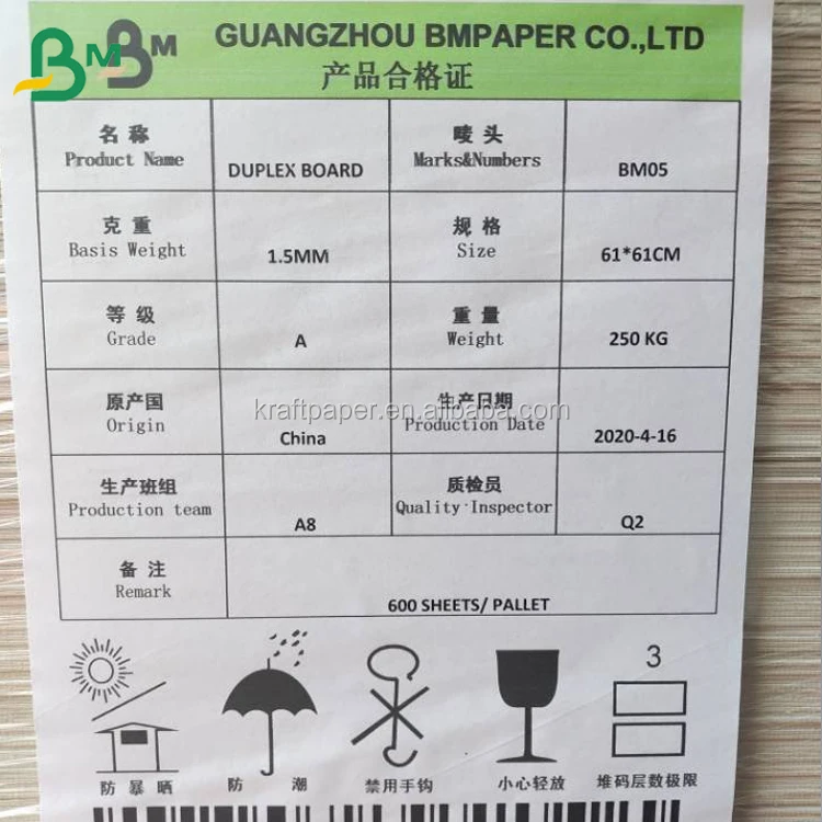 Paper Name | C1S White Top Grey Back 300gsm 350gsm Duplex Board For Packaging Boxes Offset Printing |