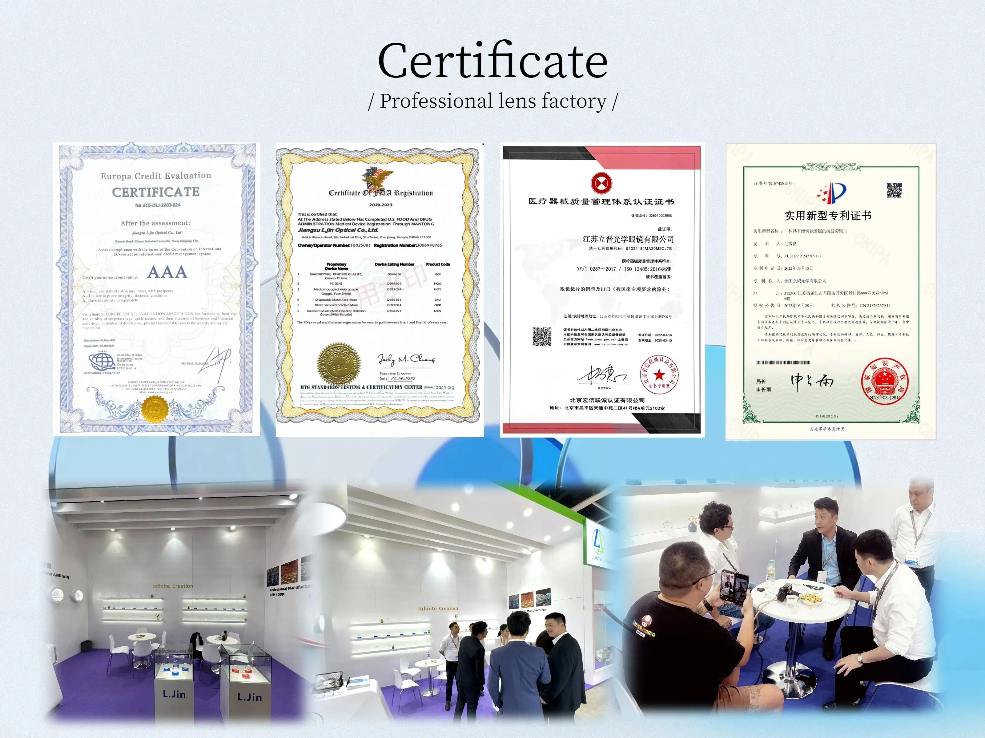 L.jin optical established in 2018 and are a dynamic company, but our whole team has more than 20 years’ experiences in lens industry, which means we are able to provide stable products with mature technology and also give you professional services. When you cooperate with us, we are always your OEM/ODM backup and fully support you to create your own lens brand.