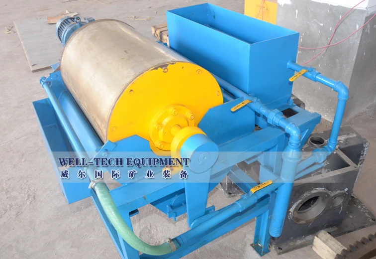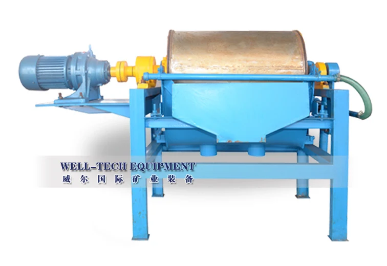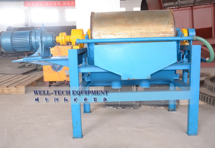 This wet drum permanent magnetic separator can continuously feeding ores and discharge ores ,with large magnetic field intensity, high magnetic field gradient, big working clearance, higher processing ability and little magnetic flux leakage, low energy consumption, fine beneficiating results, simple structure and easy to maintain.