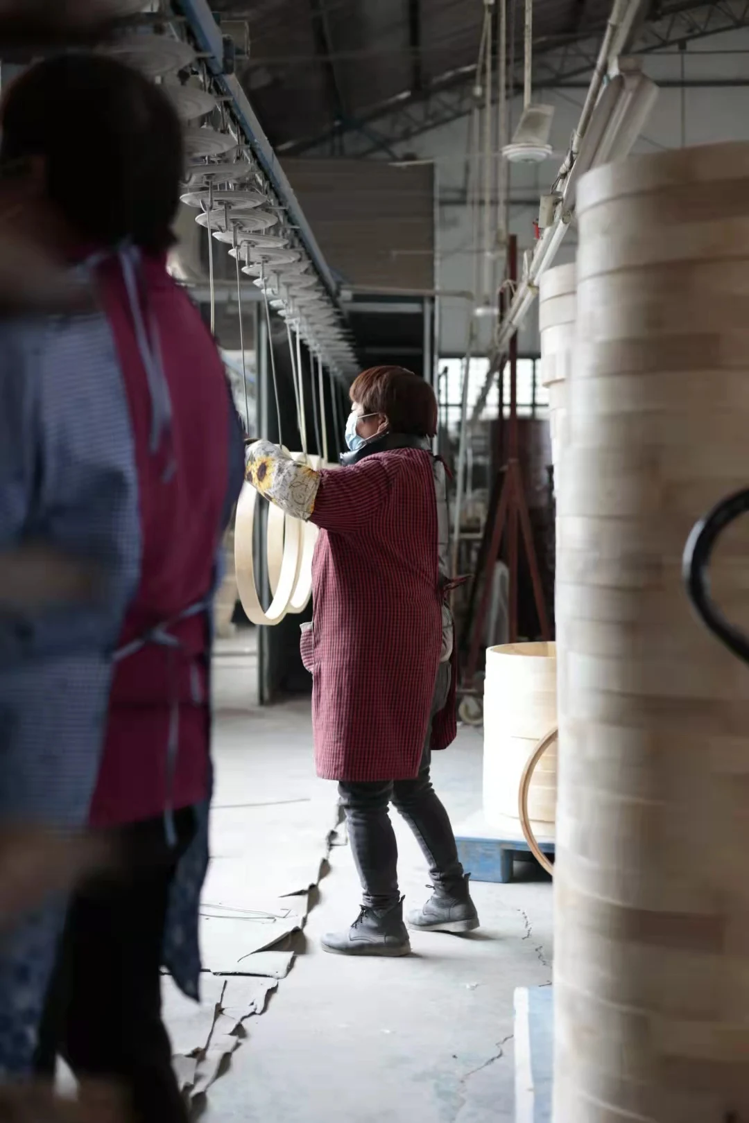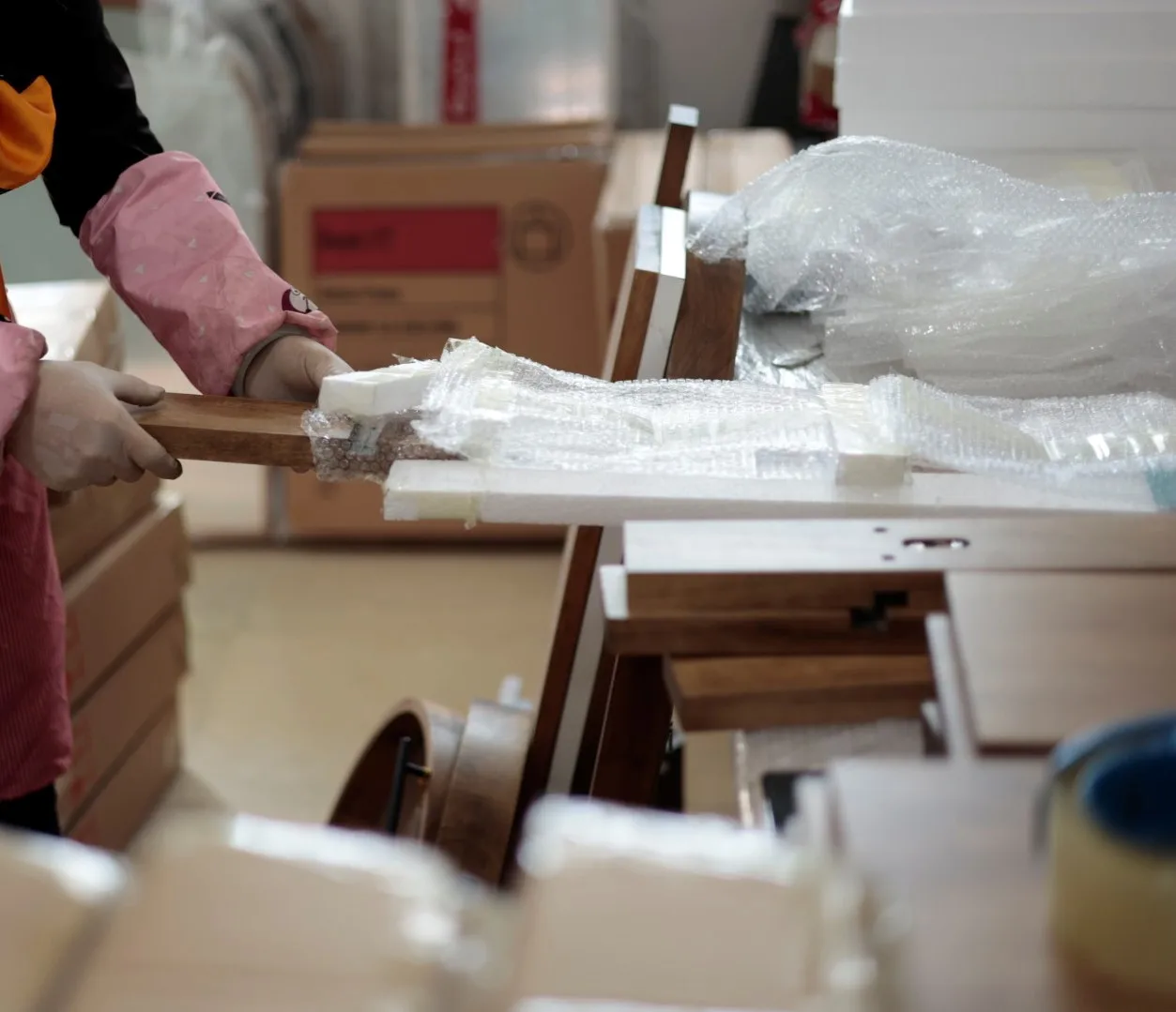 product name | Nordic modern Circular mirror with small wood block puzzle design 60x60 cm Small wood block collage circular mirror |