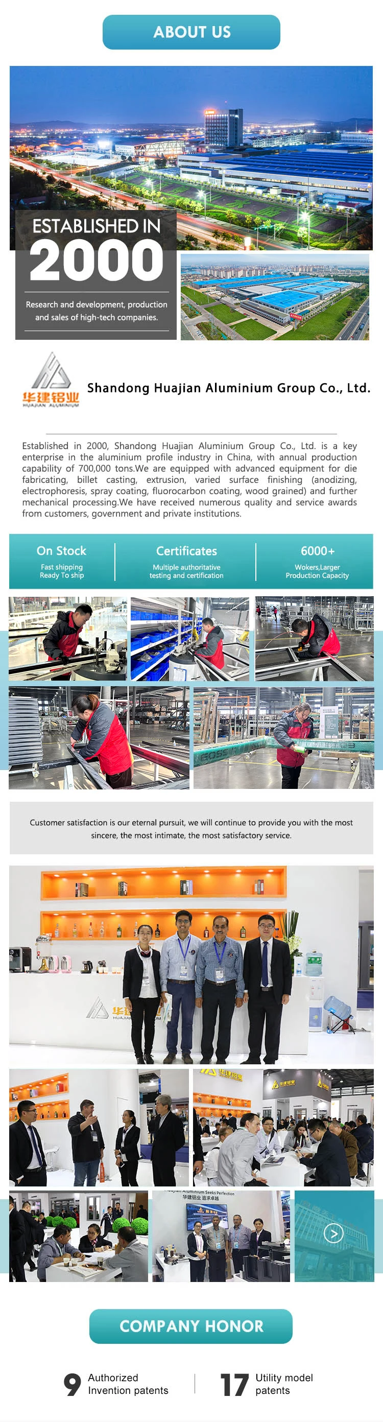 Huajian Aluminium Group is built 2000 year, we are a gold supplier with over 10 years experience on ALIBABA.