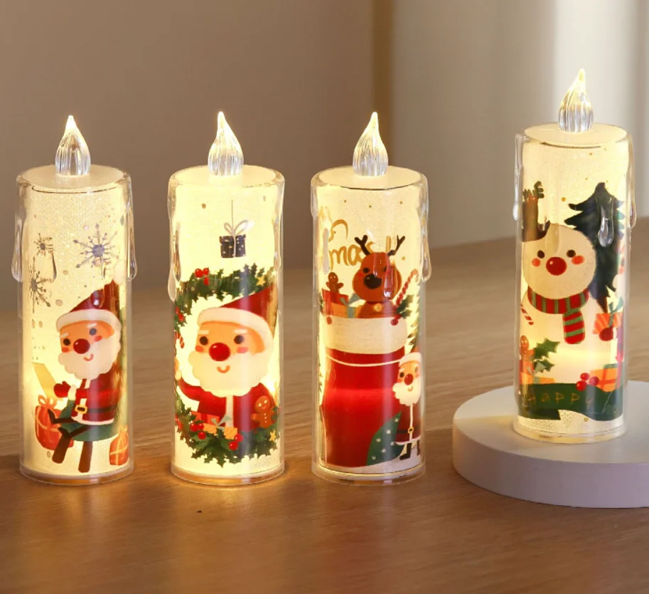 Christmas Flameless Candle Santa Claus Snowman Decals Battery Operated Xmas Themed LED Candles Festival Holiday Decorations