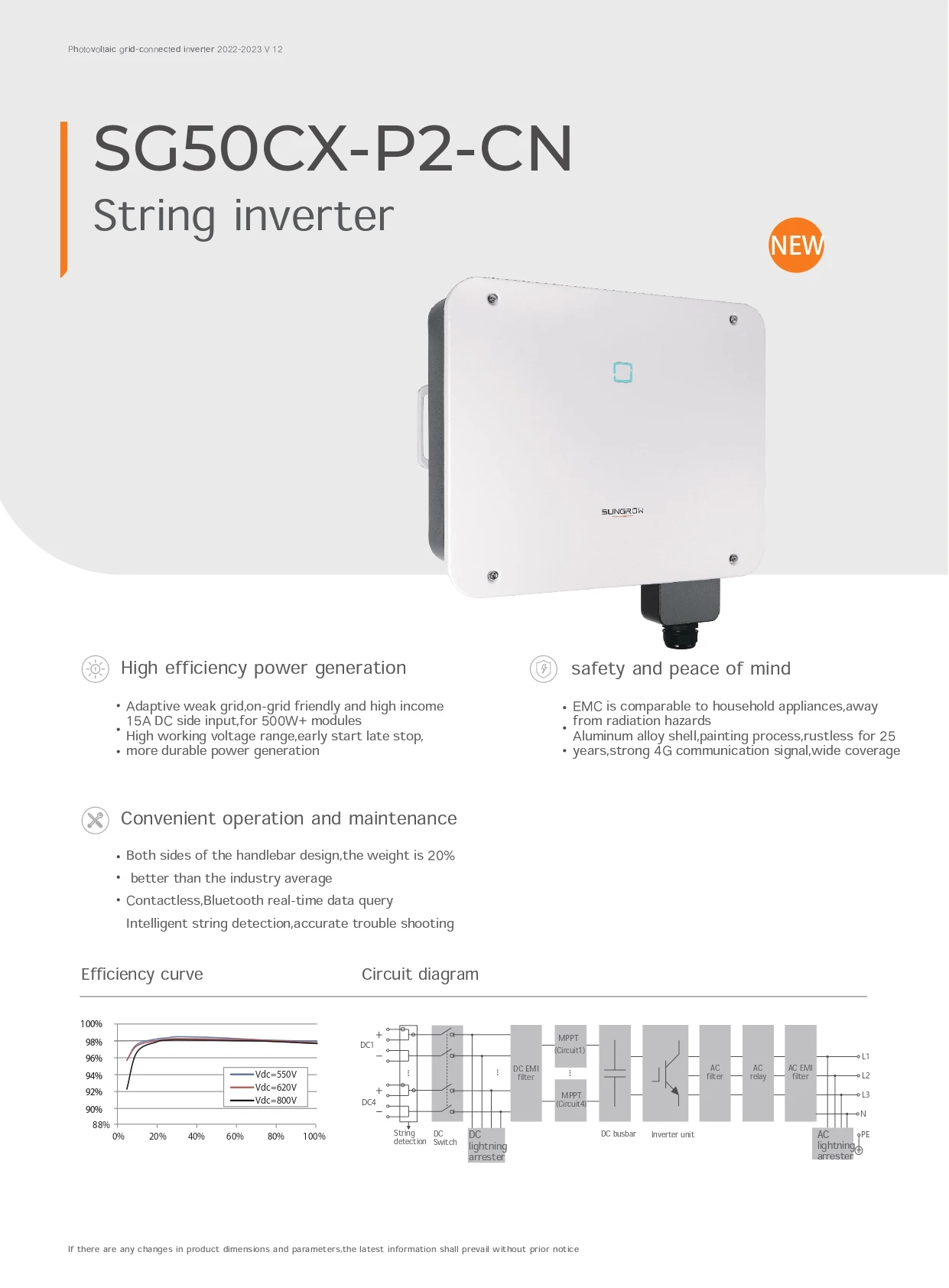 Sungrow 50KW Solar Inverter 3 Phase Power Inverter Triple AC Output 60Hz Frequency 30KW Load Power DC/AC SG50CX P2 CN Inverter