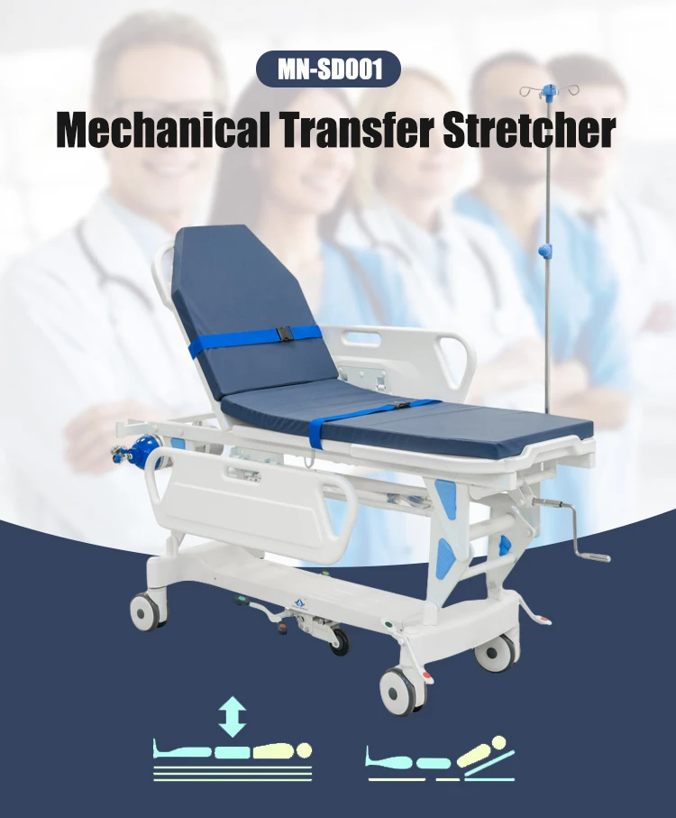 MN SD001 Hospital Medical Equipment Patient Transport Stretcher Simple Patient Transfer Stretcher With Central Lock System