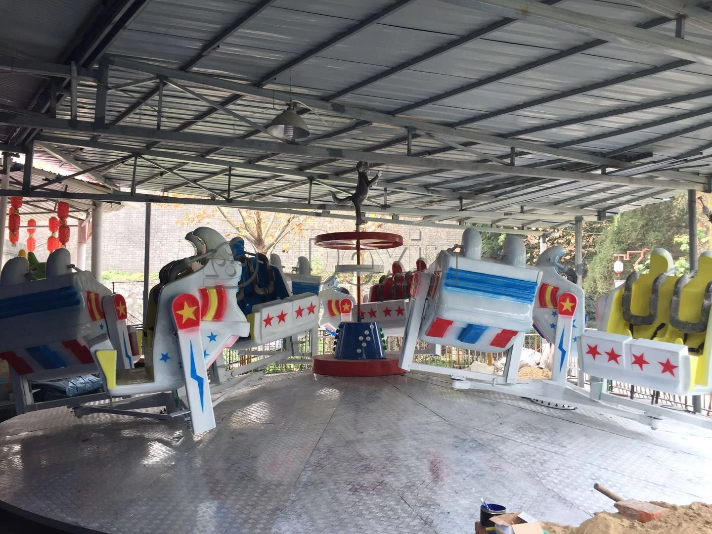 Interstellar adventure amusement equipment is a type of amusement device that combines adventure and excitement, allowing people to experience unprecedented interstellar adventures in reality. The device has a cool and personalized appearance, with a unique operating mode. All cabins rotate clockwise along with the bottom plate, while each cabin rotates counterclockwise and flips 360 degrees on its own. The flipping of each cabin is not synchronized, providing a spacewalk like experience.