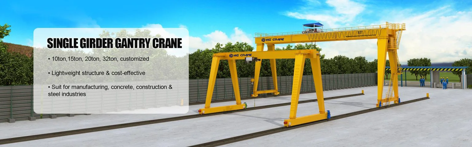 * Single girder gantry crane is widely crane, together with CD, MD, HC model electrical hoist, according to the shape, it also divided into MH type and MHL type gantry crane. * MH type single girder gantry crane has box type and truss type, the former have good techniques and easy fabrication, the latter is light in dead weight and strong in wind resistance. For different usage, MH gantry crane also has cantilever and non cantilever gantry crane. If have cantilevers, the crane can load the goods to the crane edge through the supporting legs,which is very convenient and high efficiency. * MHL type single girder gantry crane is L type partial hanging gantry crane, with small size and light duty, special for putting steel pipes, girders, or other long materials into the special place, widely used in steel plant, concrete girder yard.