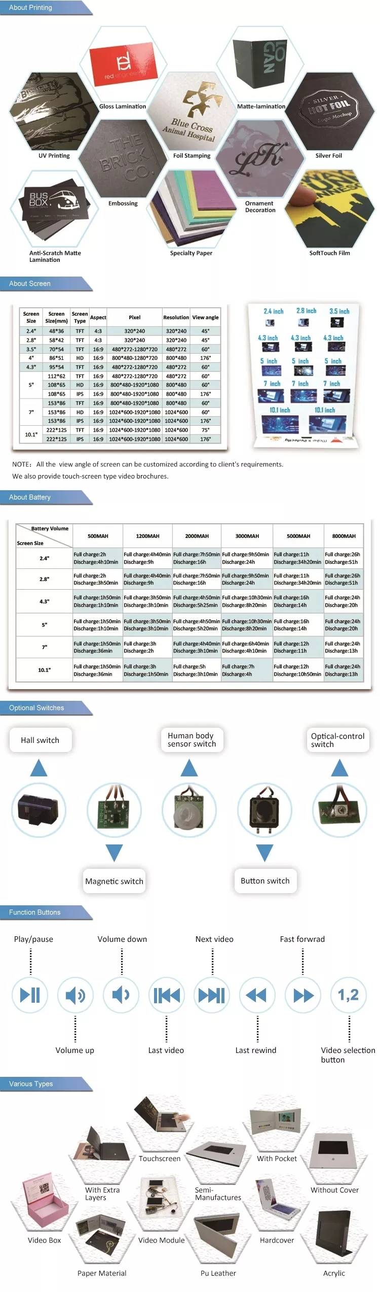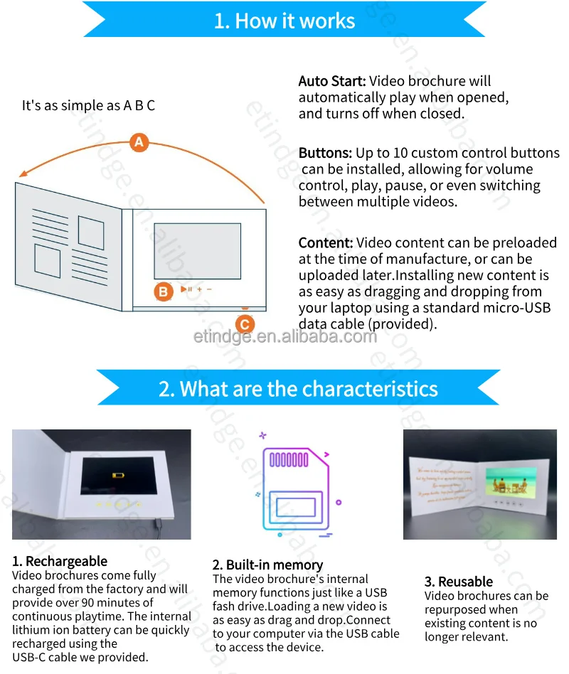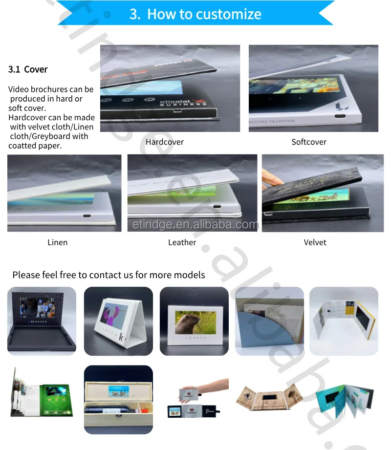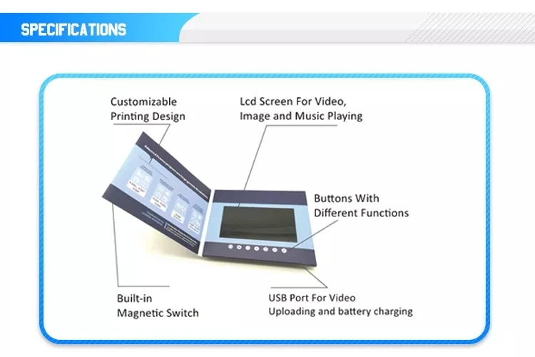 Built-in Memory Custom Printing A5 Hardcover Tri-fold 7 inch IPS LCD Screen Video Brochure High Definition with Battery | ||||||||||