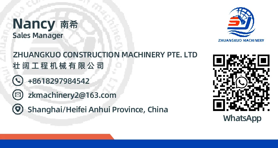 3. The main components of all the products sold by the company (engine, hydraulic pump, distribution valve) provide lifelong free after-sales technical service and factory inspection of the whole machine before leaving the factory, to ensure that there is no problem in the case of safe delivery to the port, welcome to the site to buy free test drive, customers who are unable to come to the site can add WhatsApp or email zkmachinery2@163.com. For more information, please call Nancy sales manager at+86182-9798-4542. |