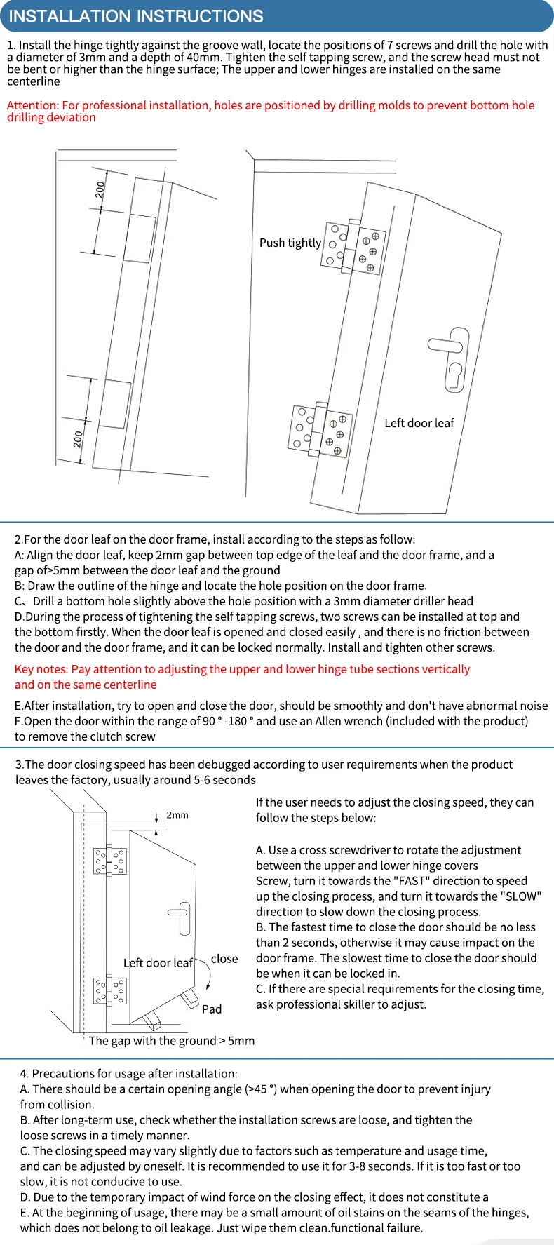 ROEASY high quality invisible door hinges zinc alloy lift off door flag hinges self closing heavy duty door hinges