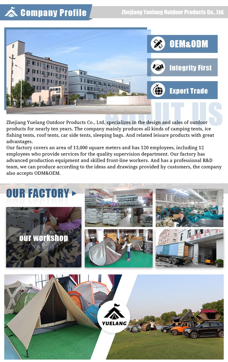 Q3:Can I choose the product with different size or color? Customized specifications are accepted too.We can design and manufacture different tents for you till you are satified.