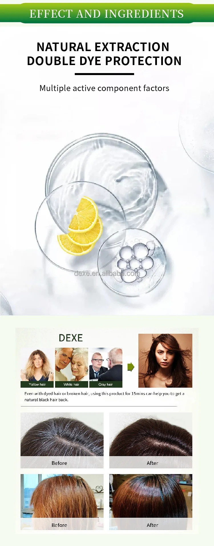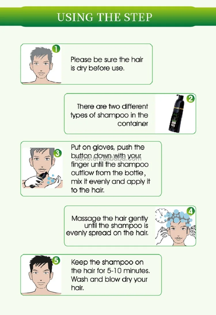 Dexe Black Hair Shampoo is a kind of shampoo which can dye your hair into black in 5 mins and specially designed to make your hair black shinning just through the ordinary process of washing hair at bathroom.Black Hair Shampoo in non-toxic with high technology. It is also nourishes, protects and repairs scalp. Compared to the traditional hair dye, it has the advantage of low cost, time-saving convenience.
