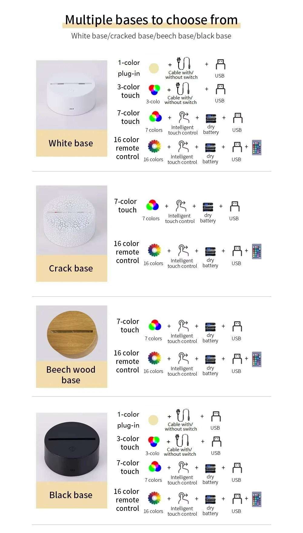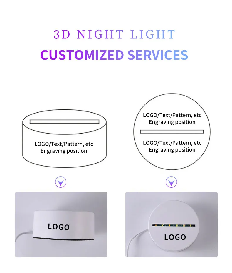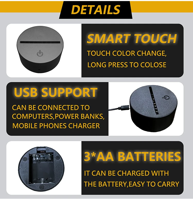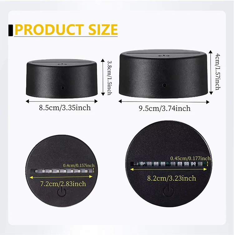 Product Name | ABS Acrylic 3D LED Night Light Touch Base with USB Cable and Remote Control | ||||