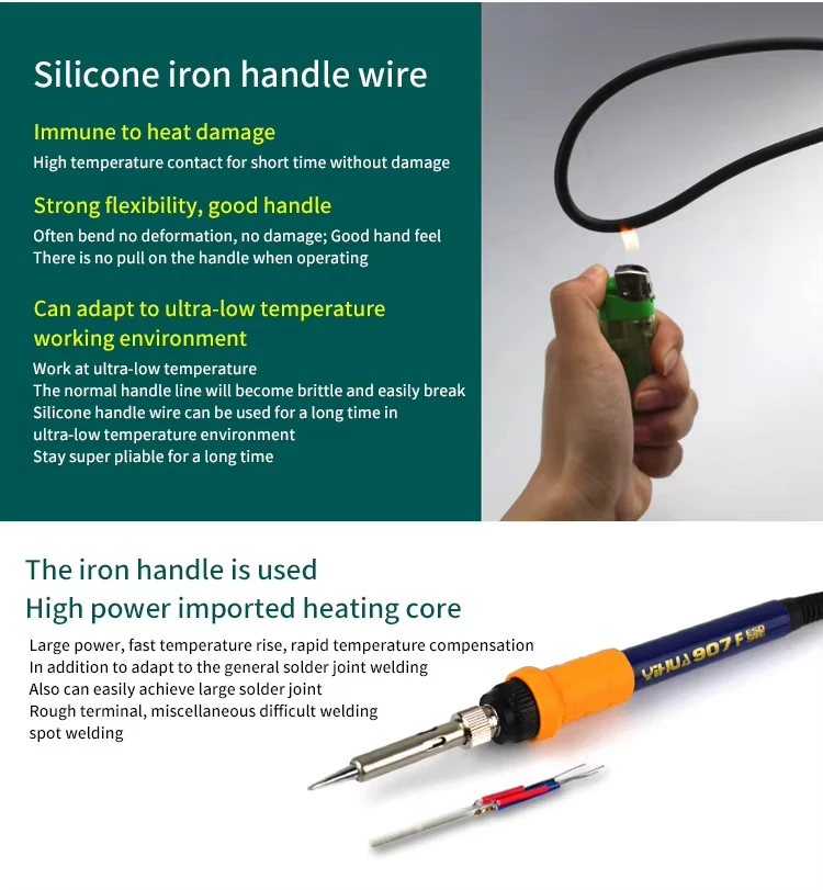 3. Soldering iron heating element s use import high-power heater , iron holder use Aluminium alloy holder with sponge in the foot of holder , that will good for working .