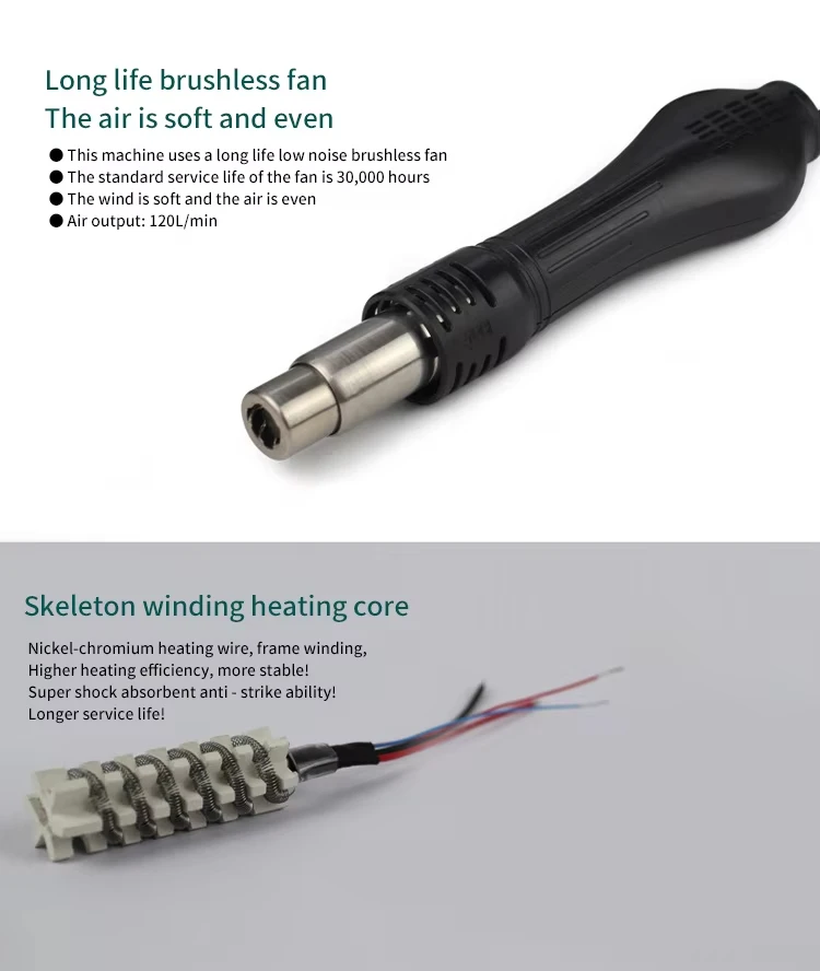 12.Automatic cooling function for effectively prolonging the heater\\'s life and protecting the hot air gun