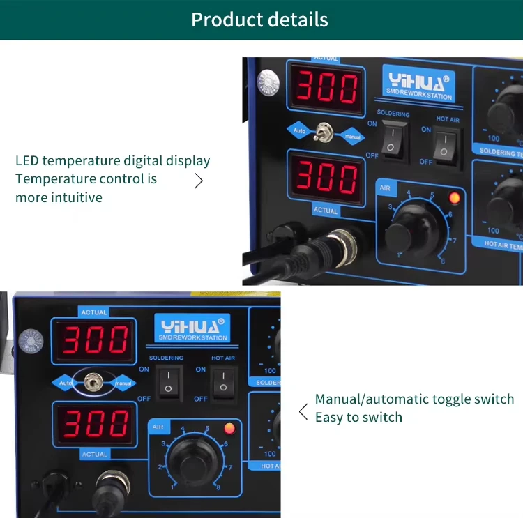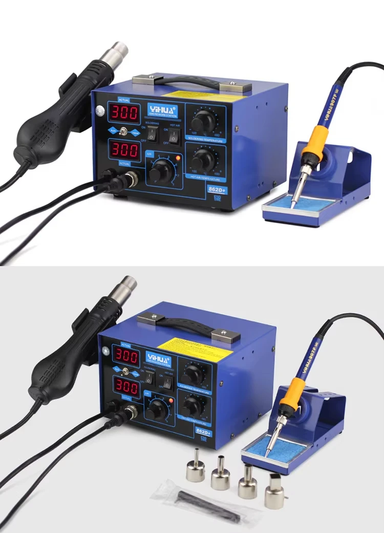 4.YIHUA862D+ 2 in1 soldering rework station use Dual LED digital displays to show precision temperature