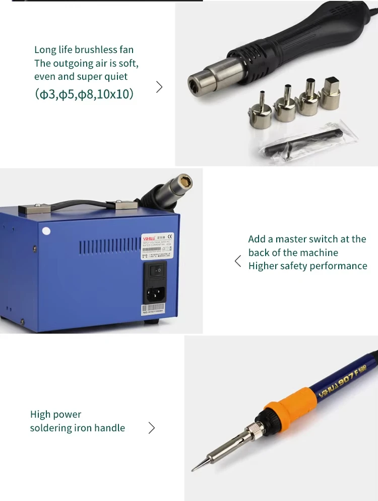 1.Hot air and hot iron 2in1 soldering rework station